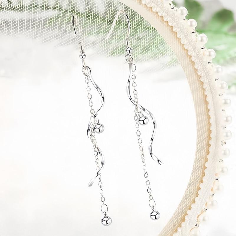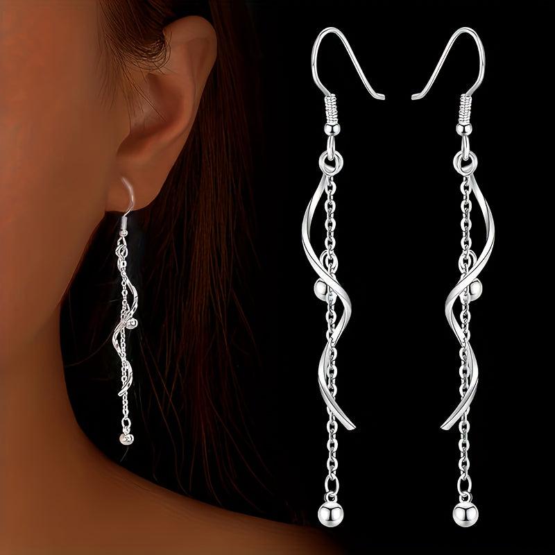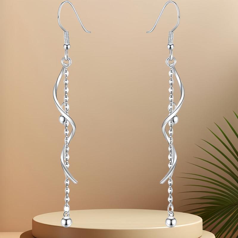 Stylish silver plated earrings featuring wave fringe design with December birthstone. Perfect for daily wear, weddings, and Valentine's Day.