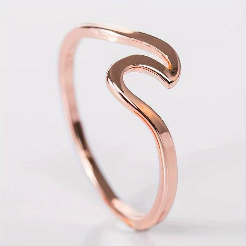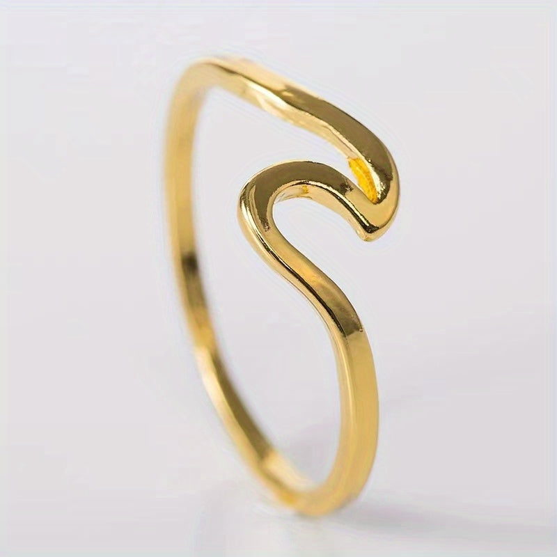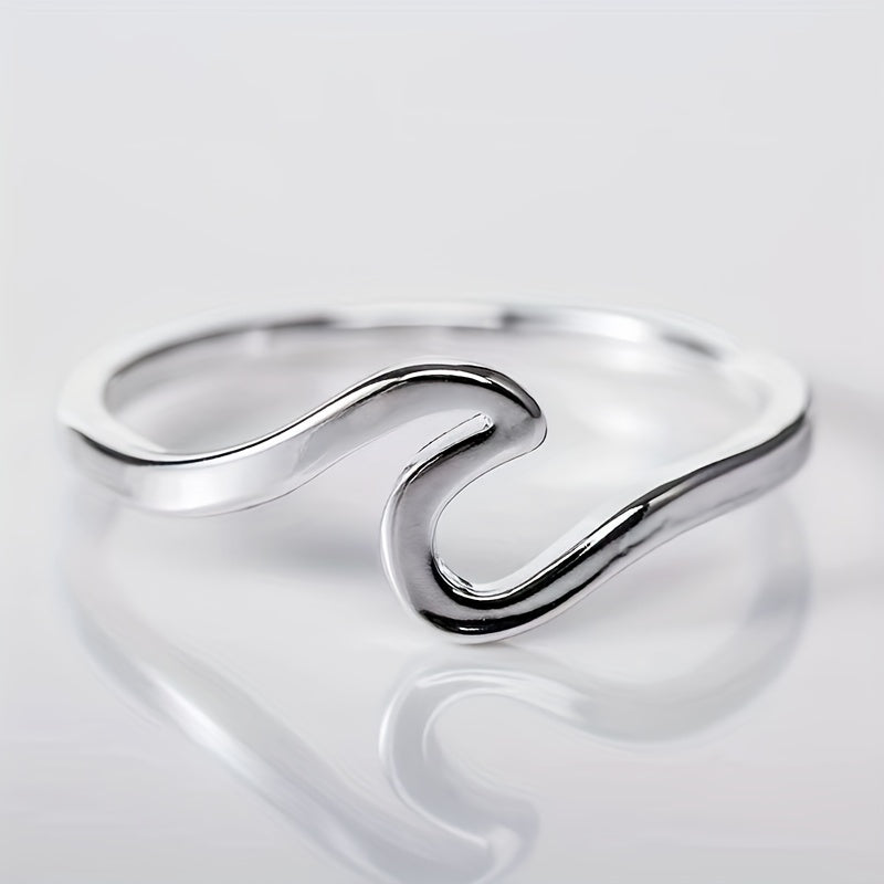 Stylish wave ring made of electroplated alloy suitable for men's fashion.