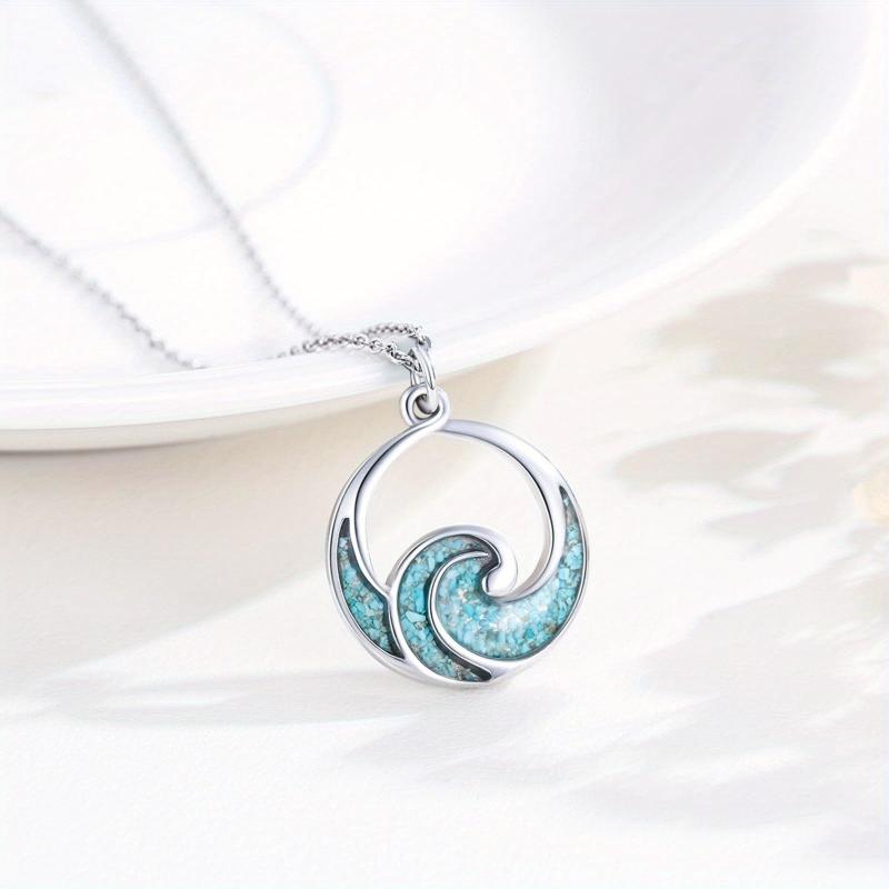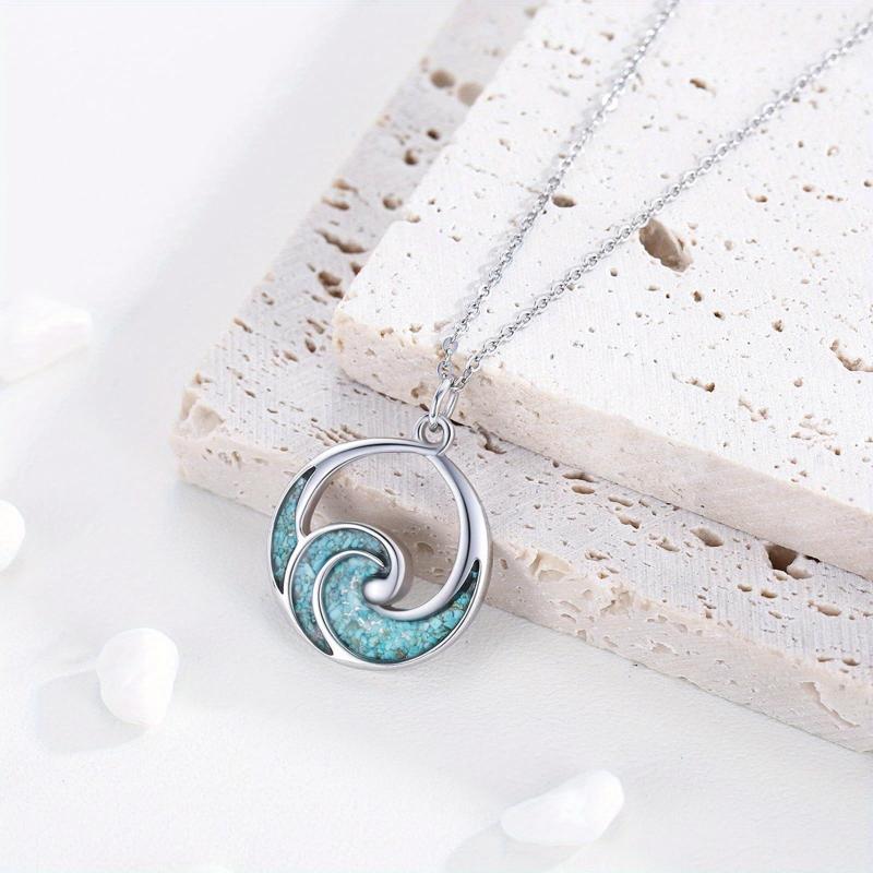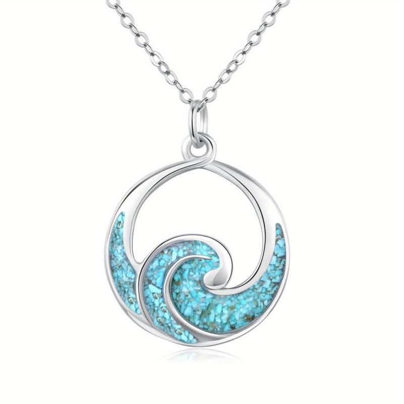 Embrace the beauty of the ocean with this stunning Waves Necklace crafted from 925 sterling silver and featuring a turquoise crushed stone. This ocean-inspired jewelry piece is perfect for nature lovers.