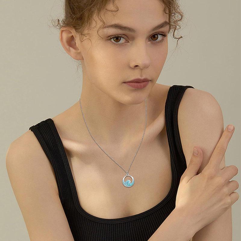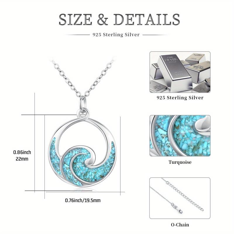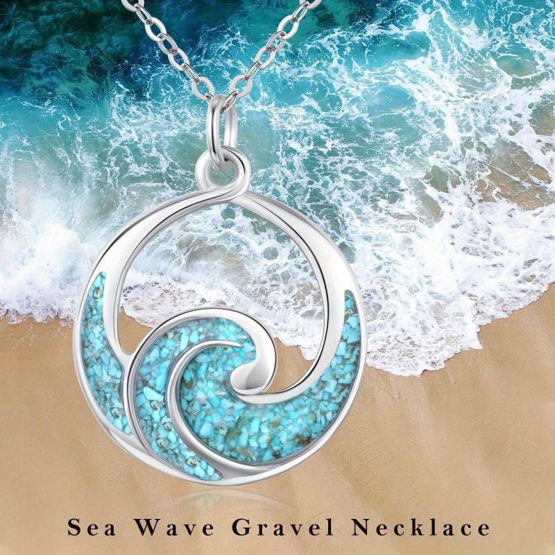 This stunning Waves Necklace is made of 925 sterling silver with a turquoise crushed stone ocean pendant. Perfect for nature lovers and those who adore the beauty of the sea.