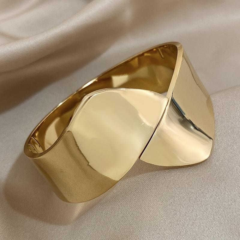 Elegant and durable wide bracelet made of stainless steel, featuring an interlaced design. Perfect for everyday wear or special occasions.