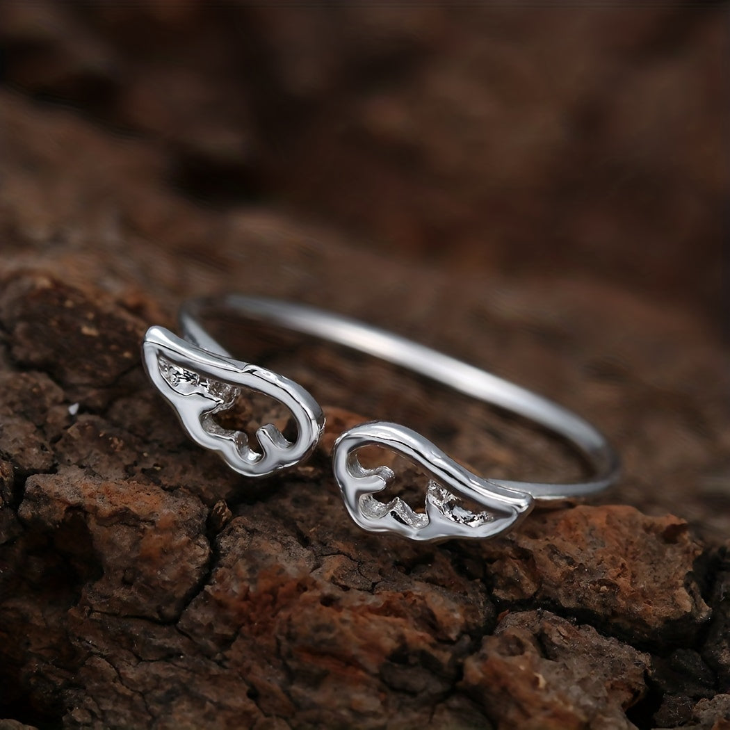 This elegant ring features a design of a winged angel ring with mouse and fox accents. Perfect for weddings, parties, or as a couple's ring.