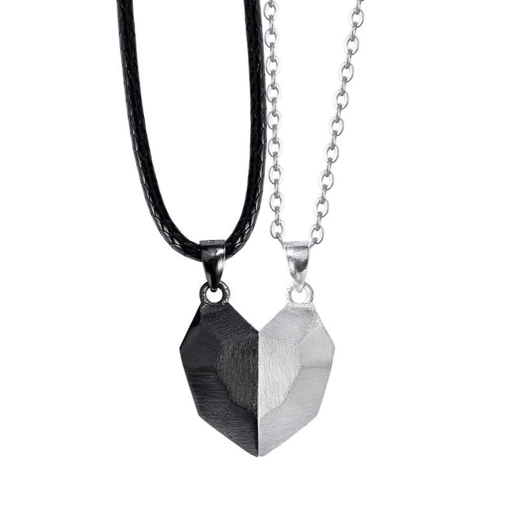 Beautiful heartbroken patchwork pendant necklace, perfect for couples in a relationship. Great Valentine's gift for lovers.