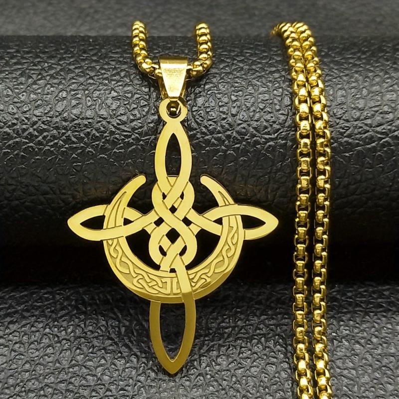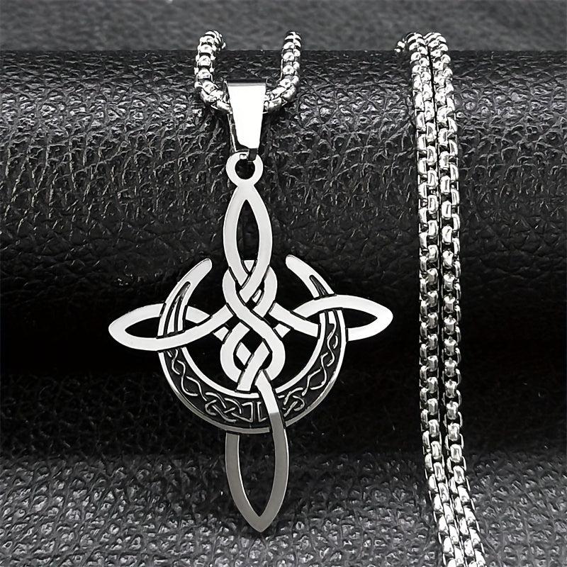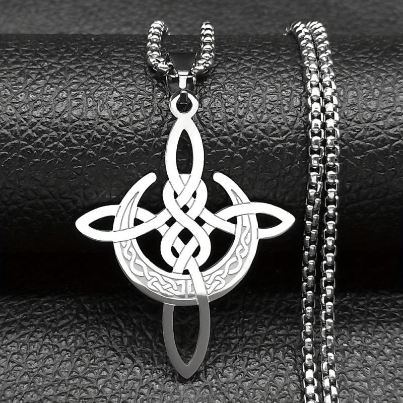 Lucky amulet Celtic knot collar necklace with intricate design. This stainless steel necklace is a perfect accessory for both women and men.