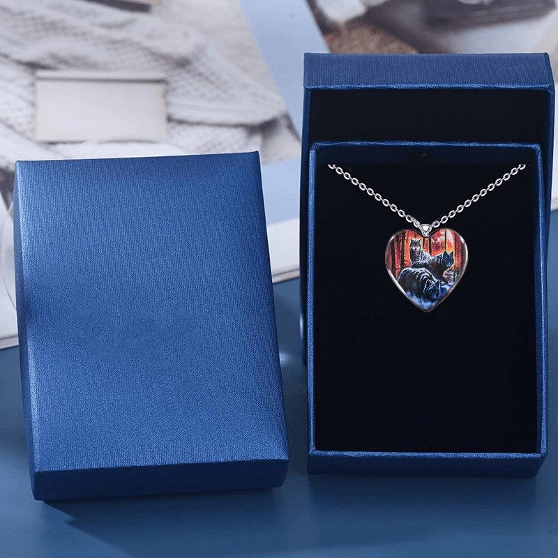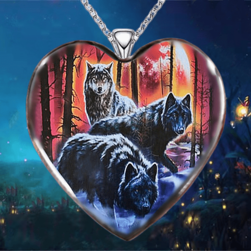 This necklace features a heart-shaped wolf head pendant inspired by Indian animal totems. The intricate design and symbolism make it a unique accessory for men.
