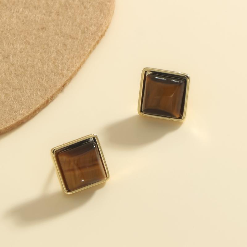 These earrings feature a square amber design inlaid with resin for a stylish look. Made from hypoallergenic material, they are perfect for daily wear and special occasions.