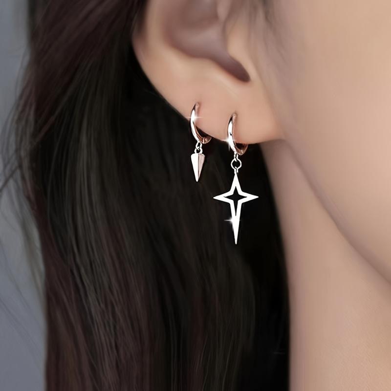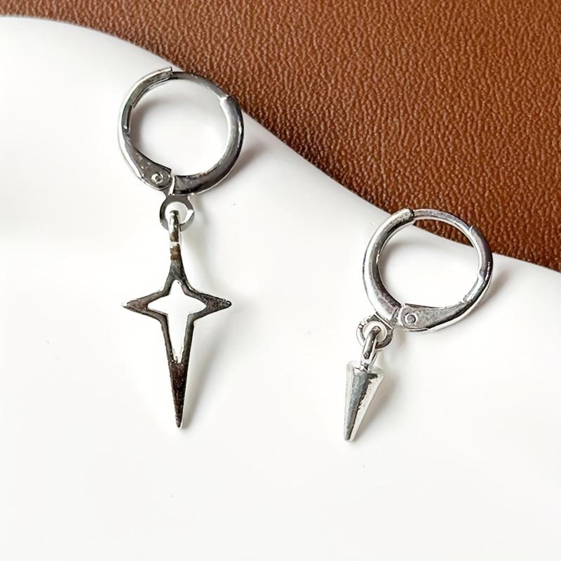 Enhance your wedding season look with these unique earrings featuring an asymmetrical design of cross and star charms.