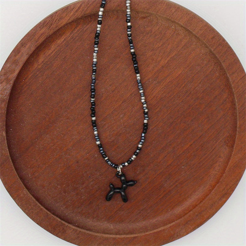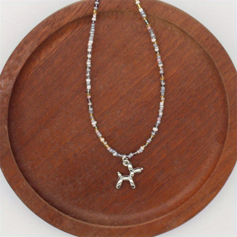 Elevate your style with this charming balloon dog pendant necklace featuring beaded detailing. Perfect for adding a playful touch to any outfit.