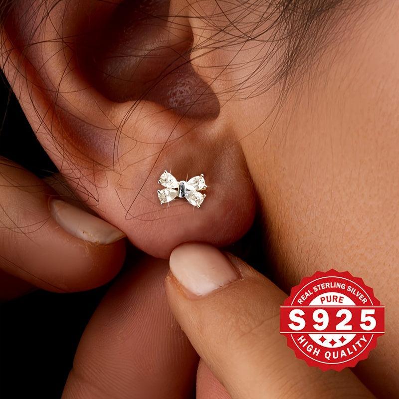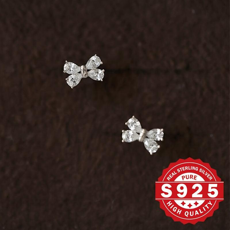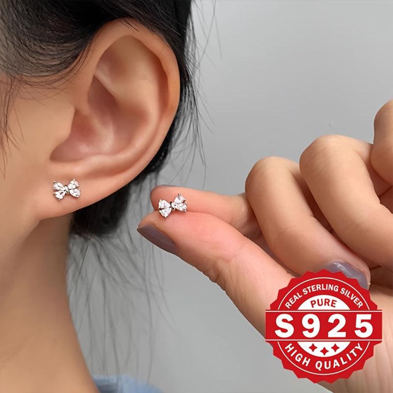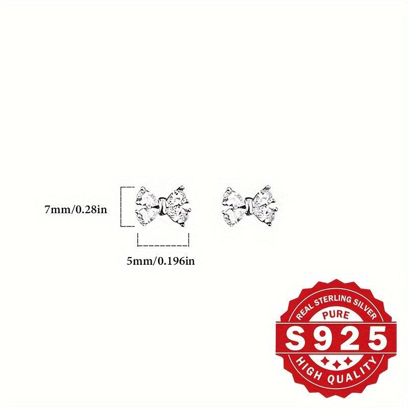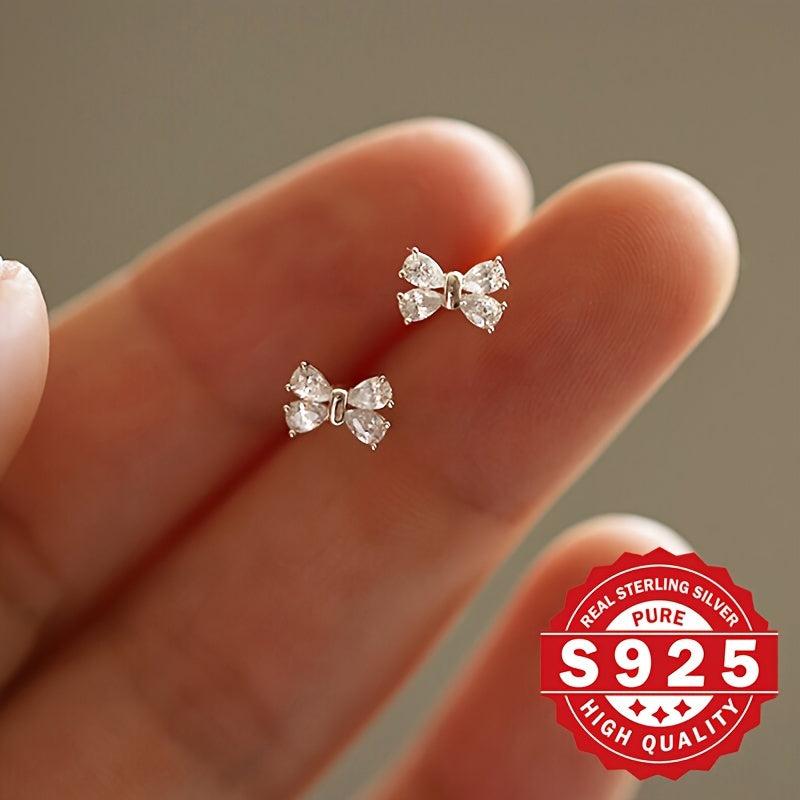 These elegant earrings feature a bow design with artificial zirconia studs. Made of 925 silver, they are small in size and perfect for everyday wear. The jasper material used is low allergy, making them suitable for sensitive ears.