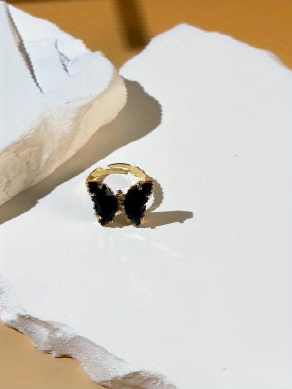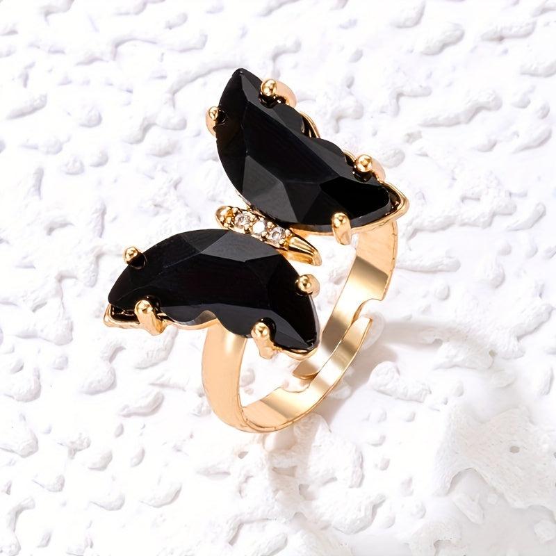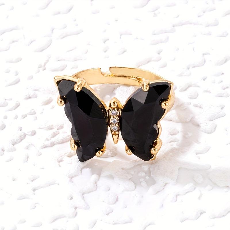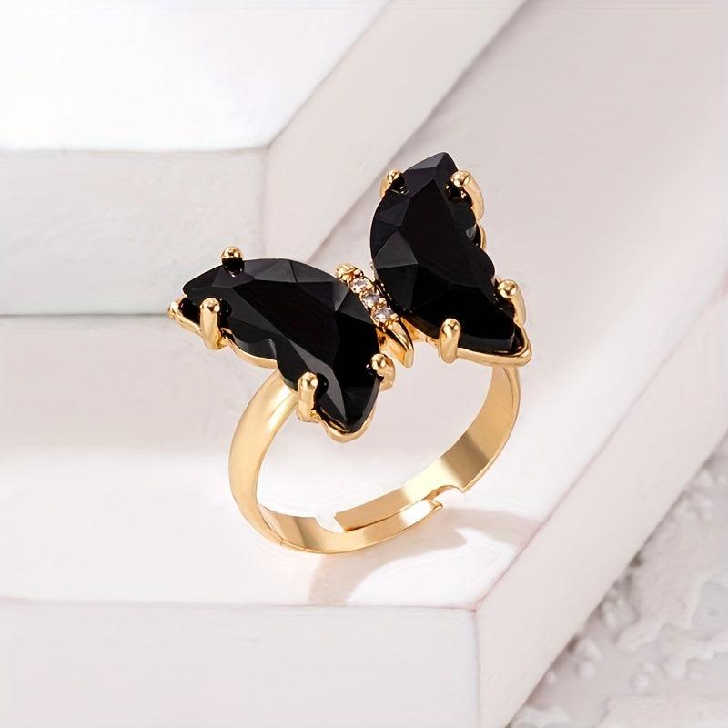 Elevate your style with this stunning butterfly and geometric ring featuring rhinestones. Perfect for parties and year-round wear, this statement accessory has a high-quality finish.