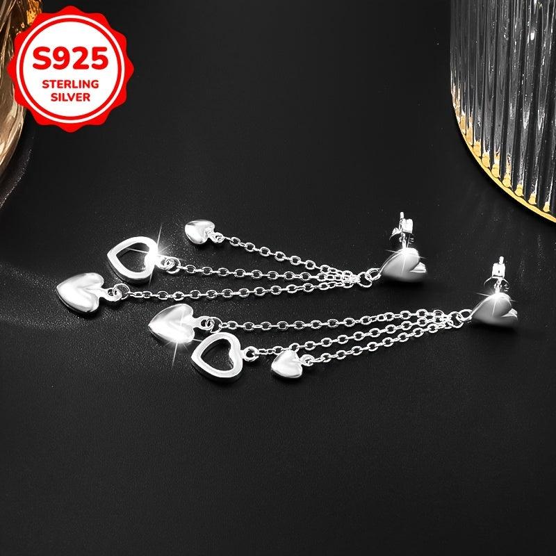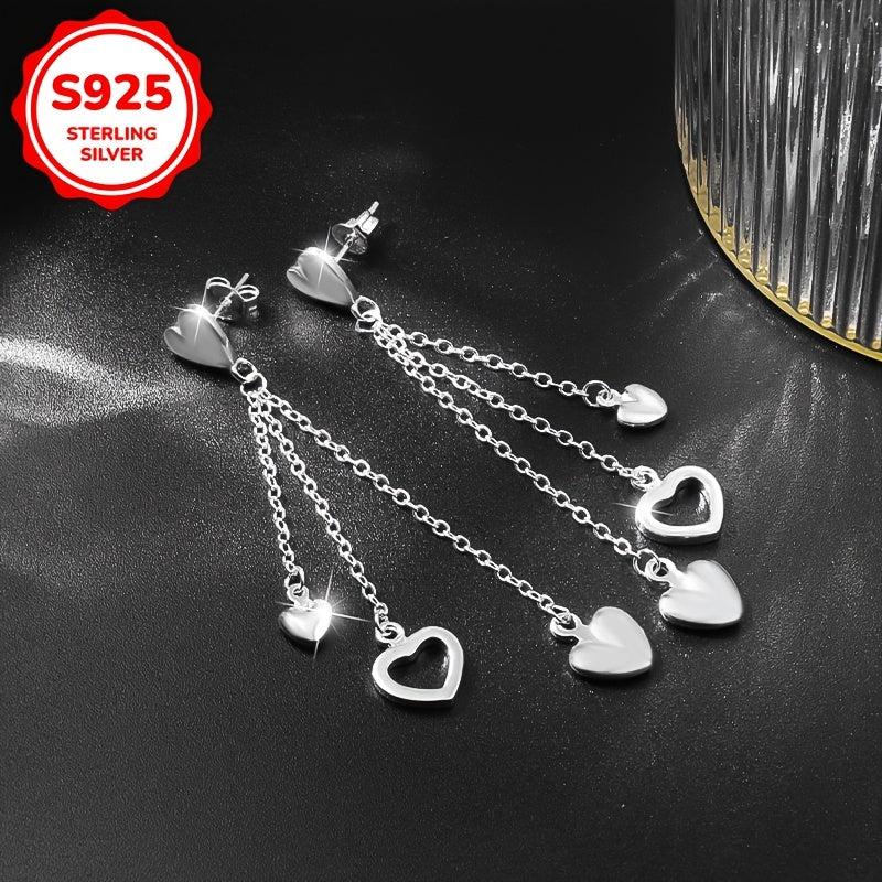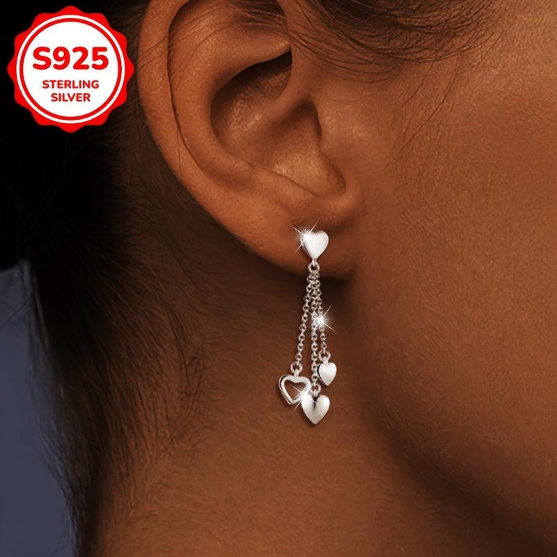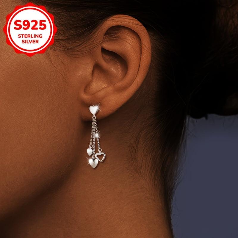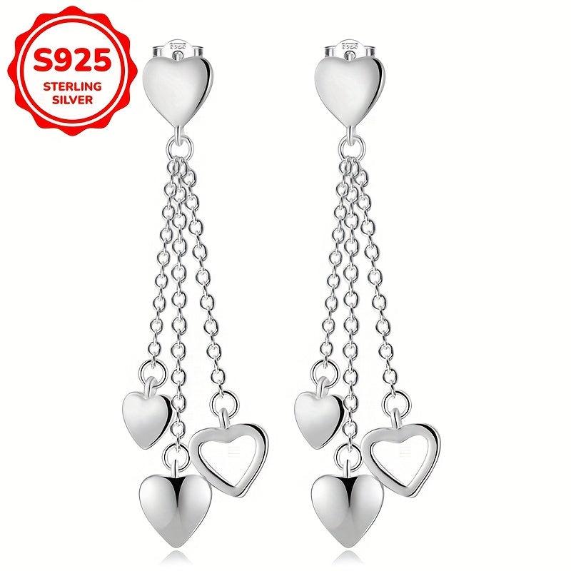 Elegant and stylish Women's studs with a sweet hollow out design featuring 3 love tassels. Made from high-quality S925 Silver, ideal for party, banquet, and festive occasions.