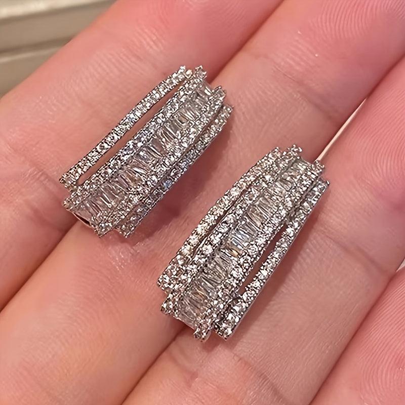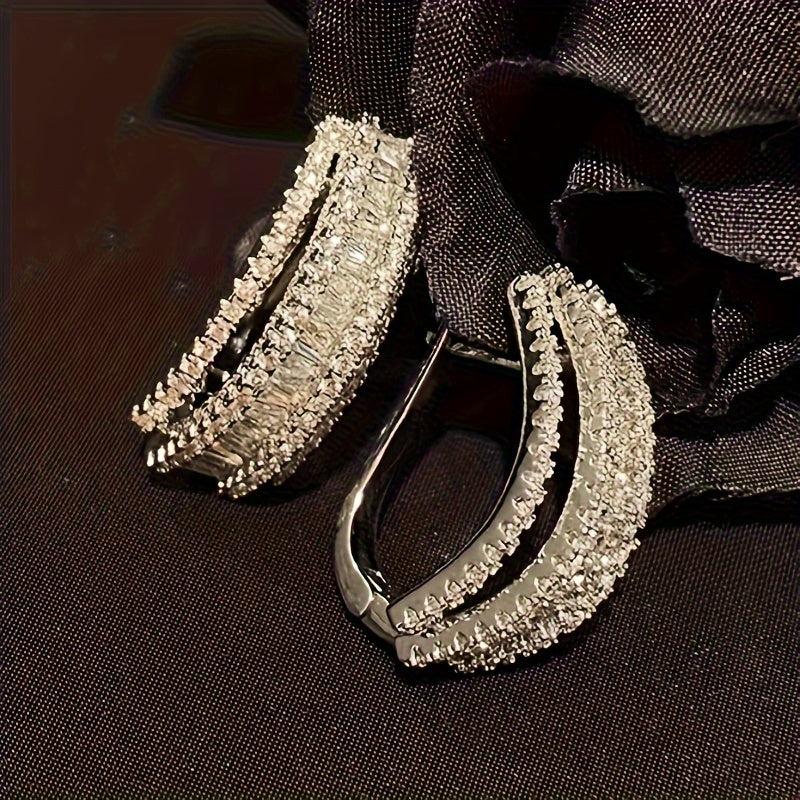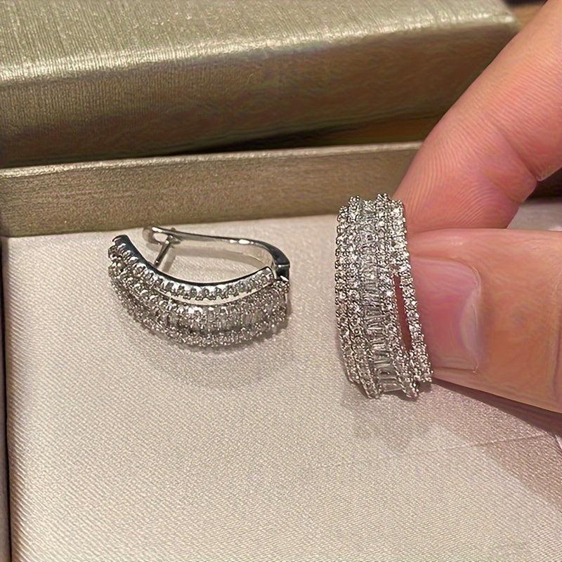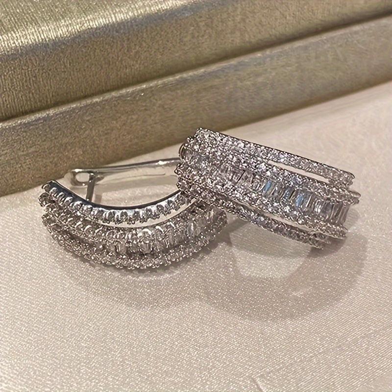 Add a touch of glamour to any outfit with these stunning curved hoop earrings featuring cubic zirconia. Perfect for weddings, parties, or everyday wear.