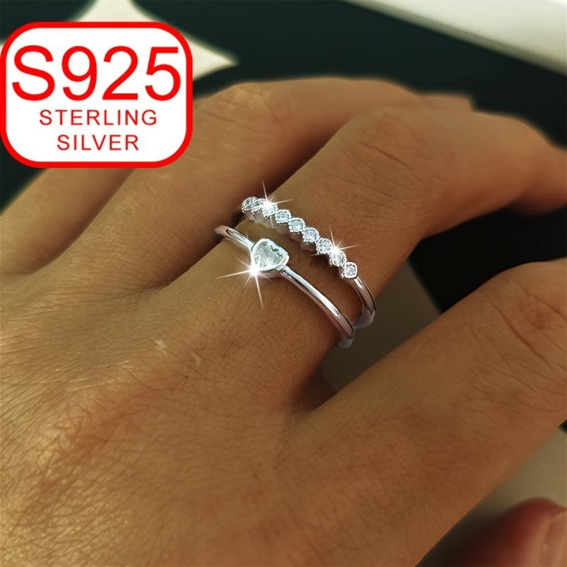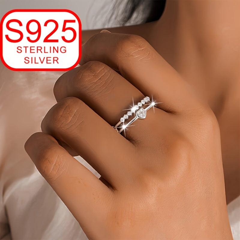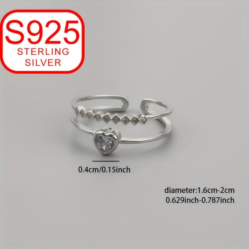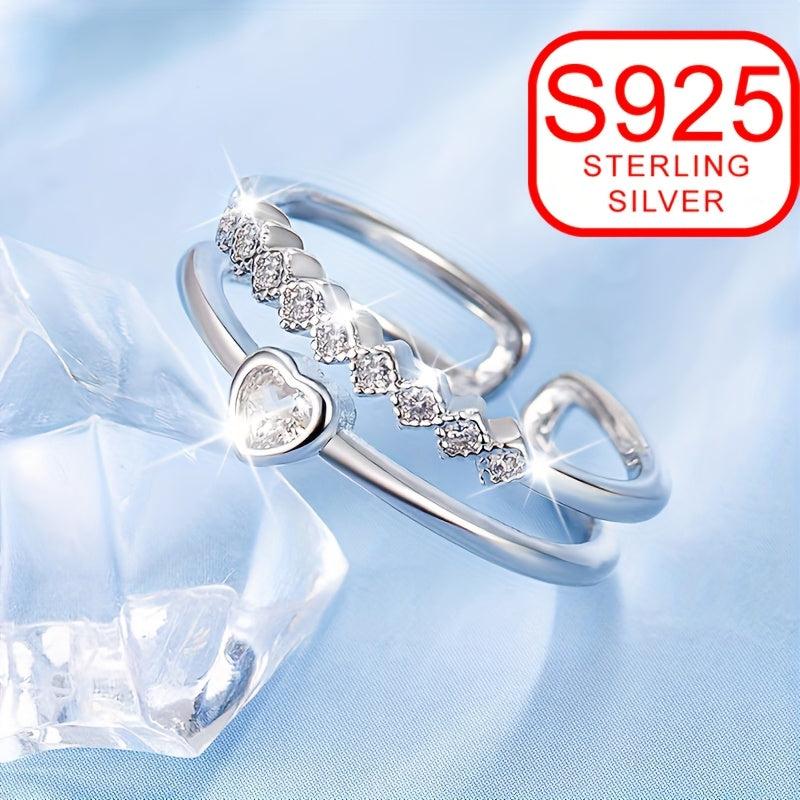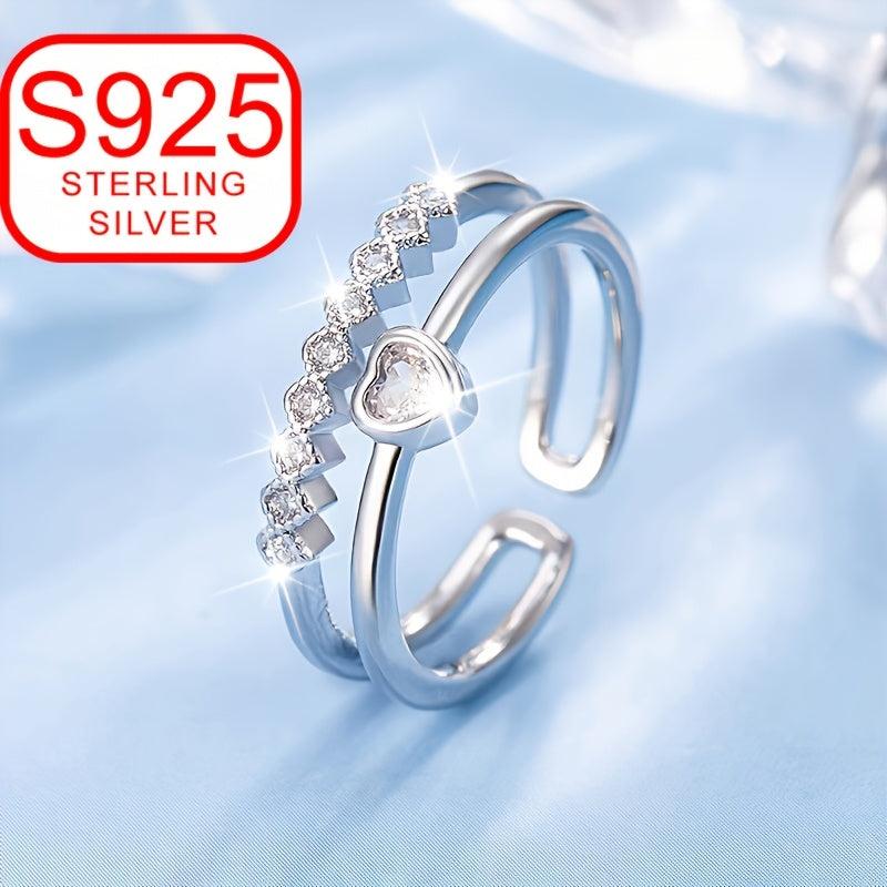 This double layer open ring is a symbol of love crafted in 925 silver, featuring a heart shape design. It is adjustable and perfect for beach weddings.