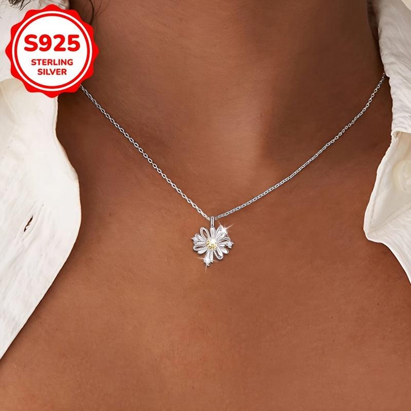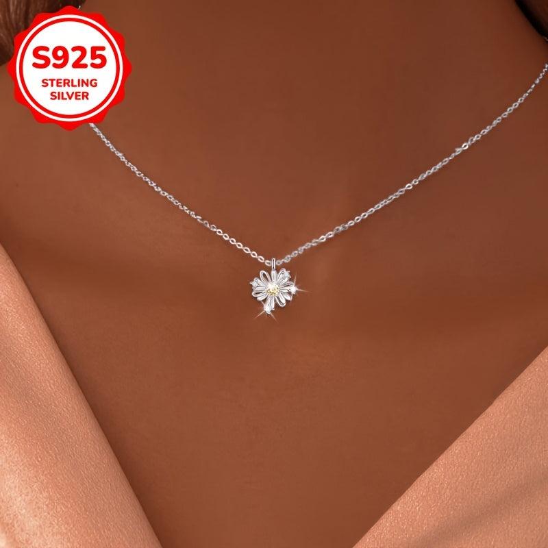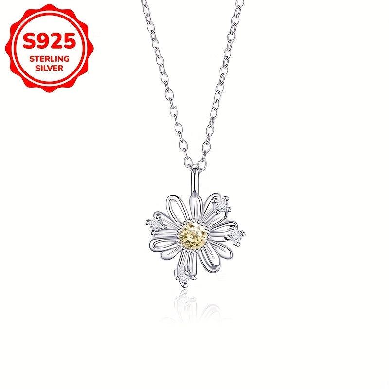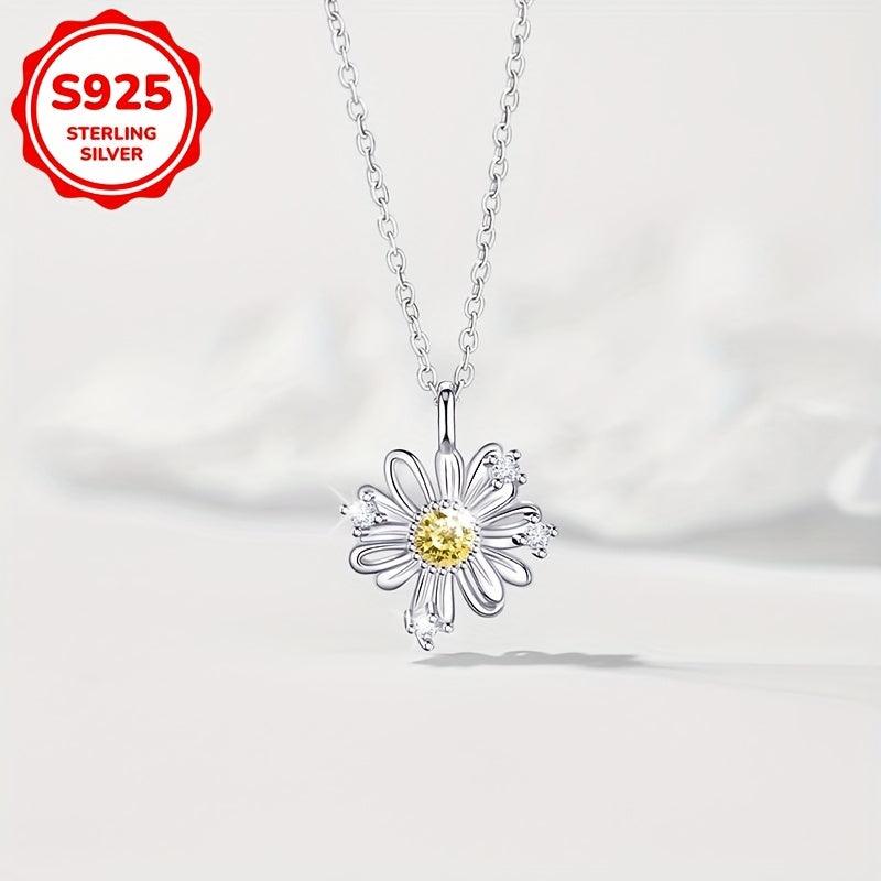 Elegant and light Daisy pendant necklace with Synthetic Zirconia stones, made of 925 Sterling Silver. Perfect for spring, daily wear, and vacations.