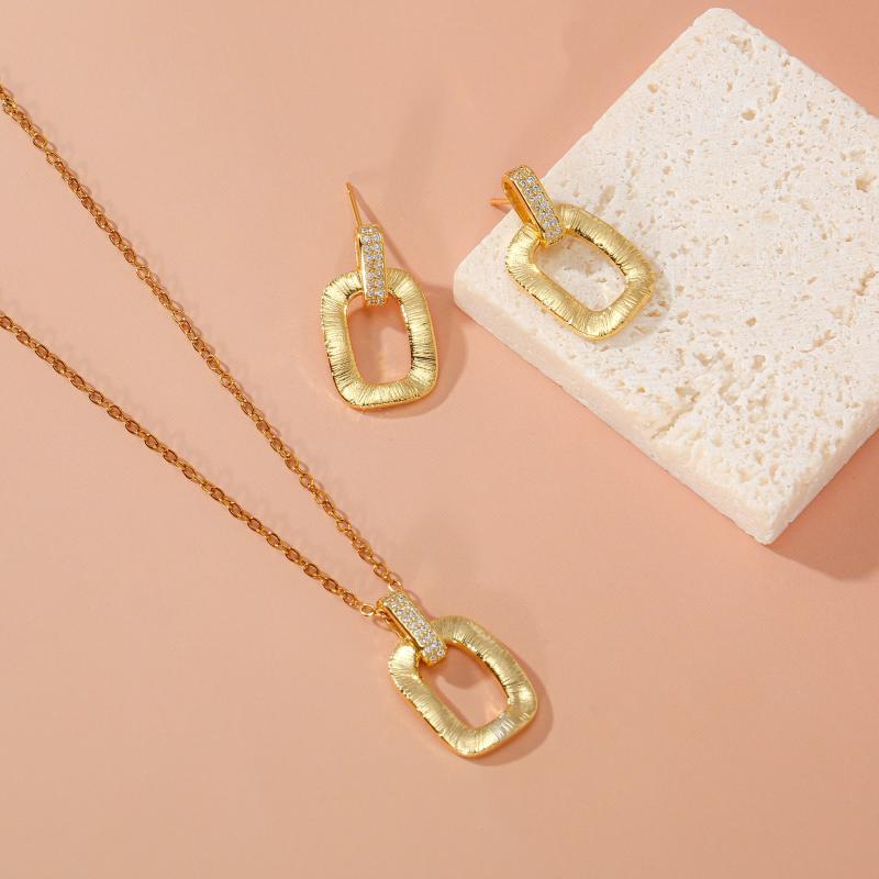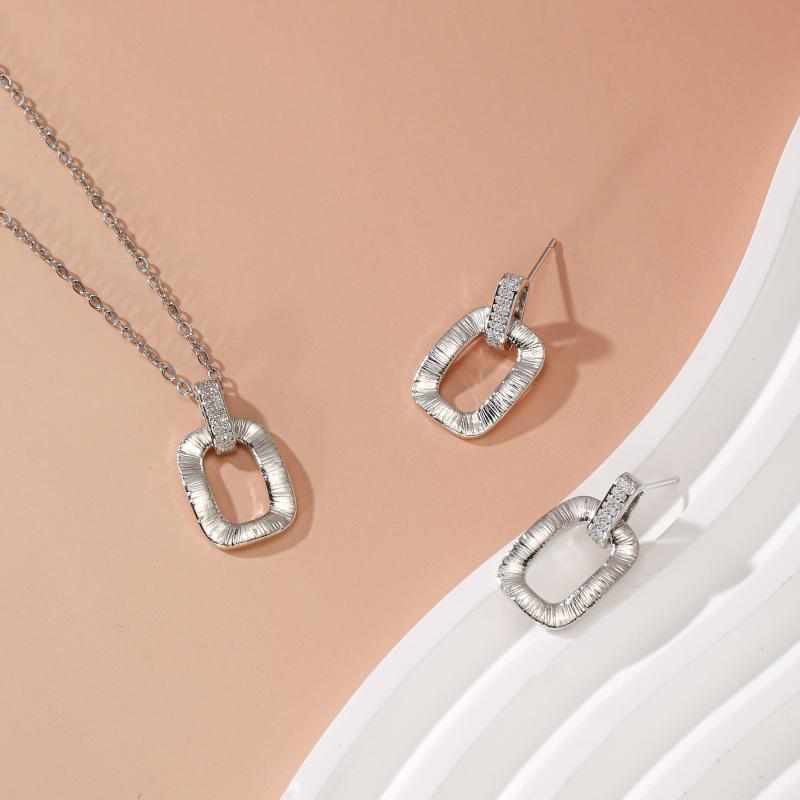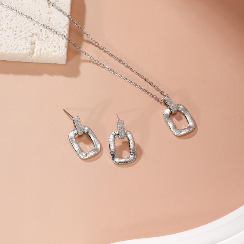This elegant set includes a pair of earrings and a necklace with a beautiful flower pendant. Made of stainless steel, this set is low allergy and perfect for any occasion like dating, gifting, or a day at the beach.
