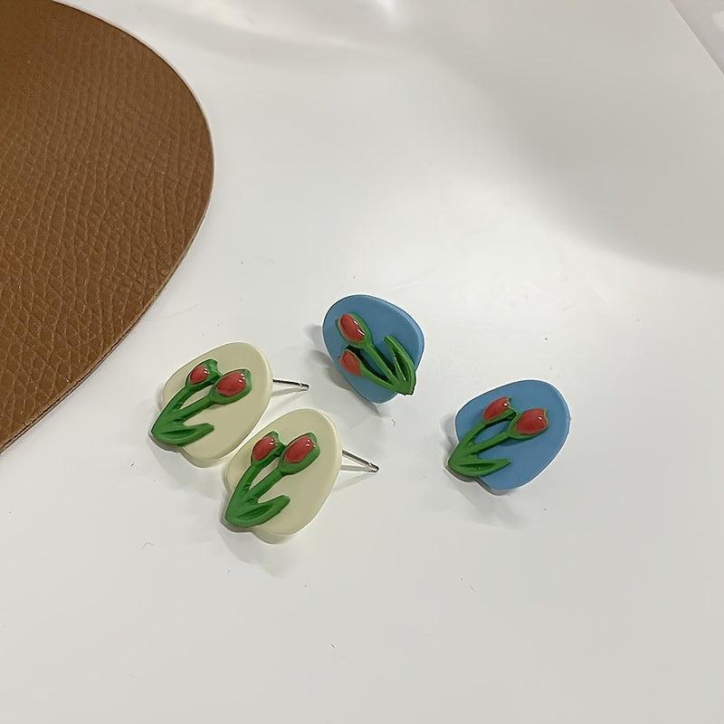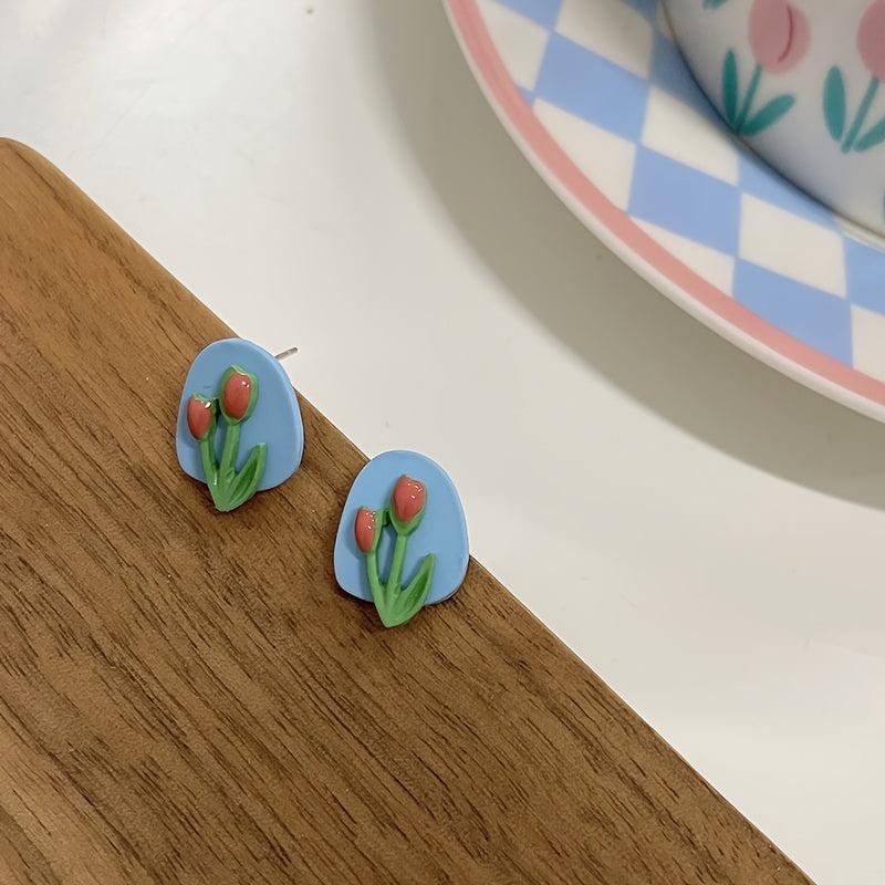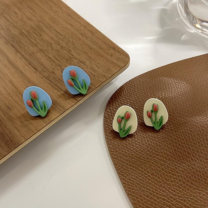 Add a sweet and fresh touch to your outfit with this pair of stylish flower stud earrings. The combination of niche and yellow colors makes these earrings stand out.