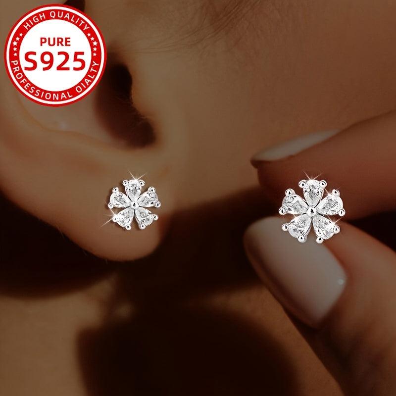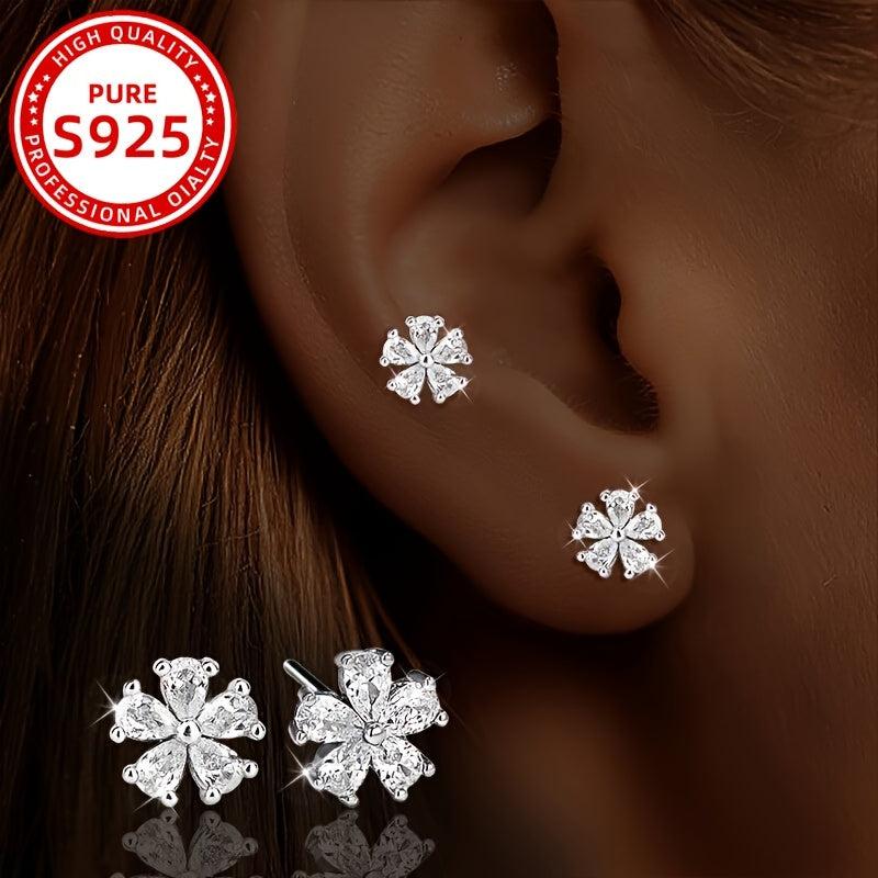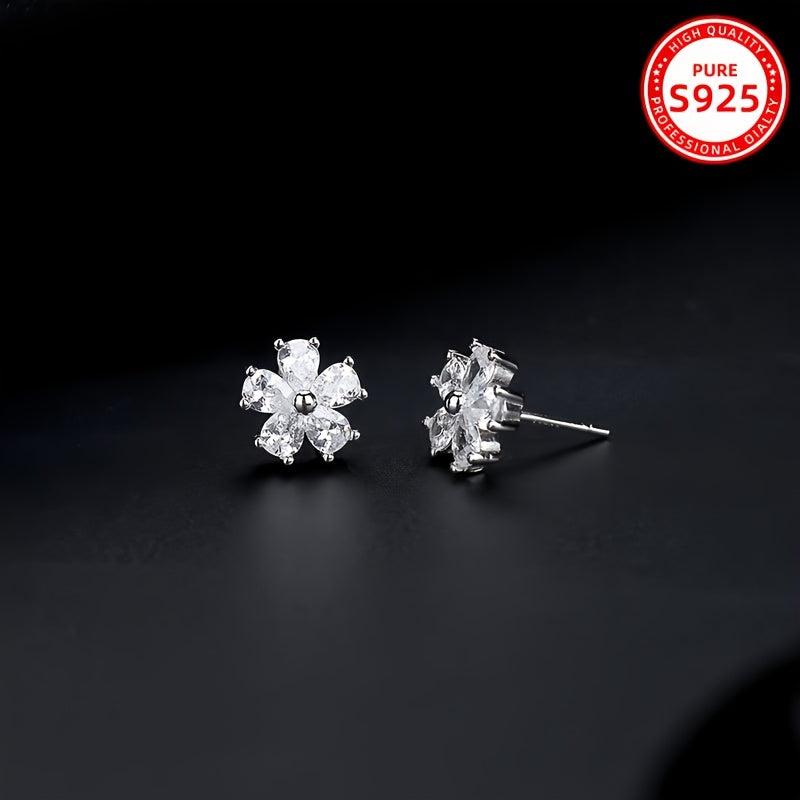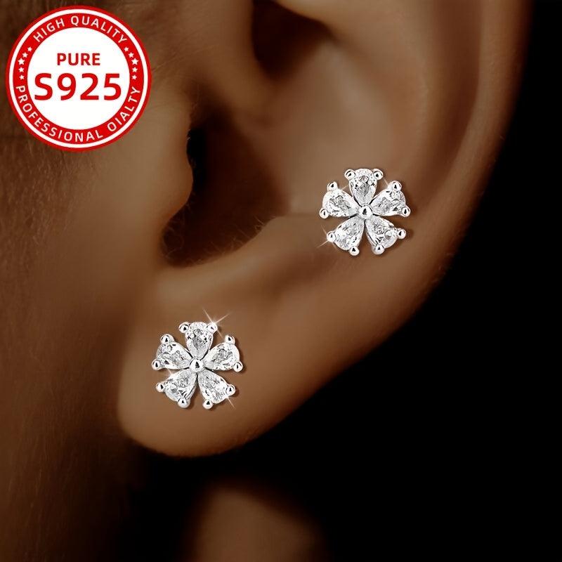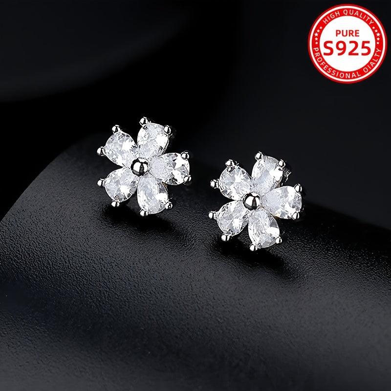 Stylish and elegant zirconia earrings featuring a floral design in 925 silver for daily wear, parties, and holidays. Makes a perfect gift.