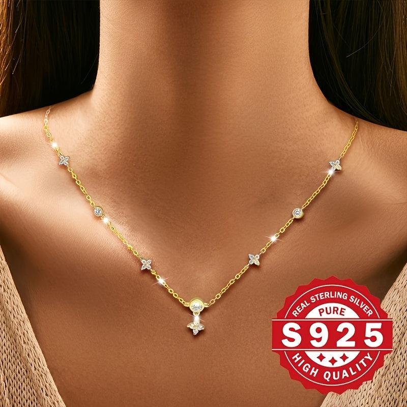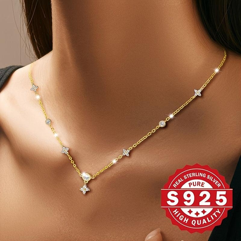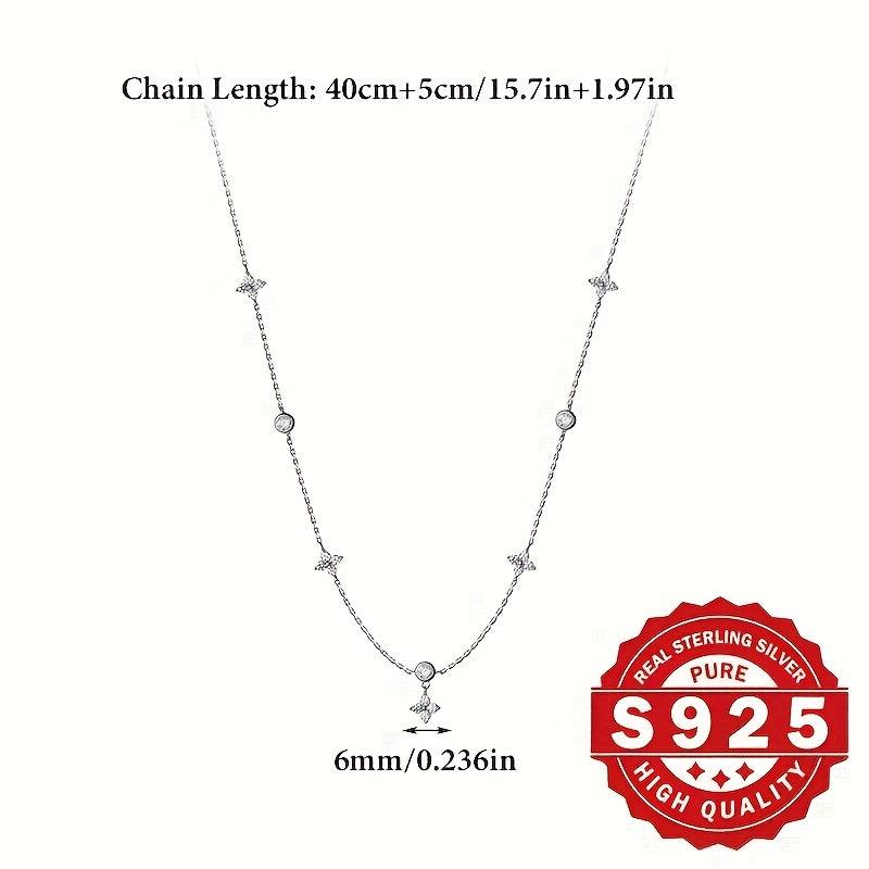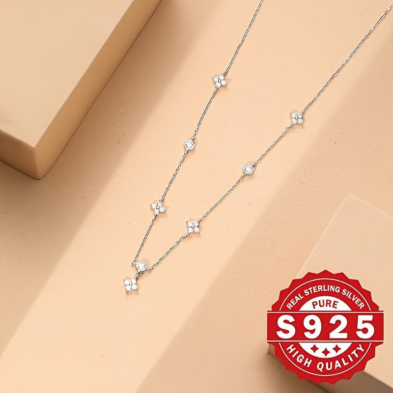 This stunning necklace features a four leaf clover design with synthetic zirconia stones on a sterling silver chain. The tassel adds a fashionable touch, making it suitable for evening wear. Hypoallergenic and eye-catching.