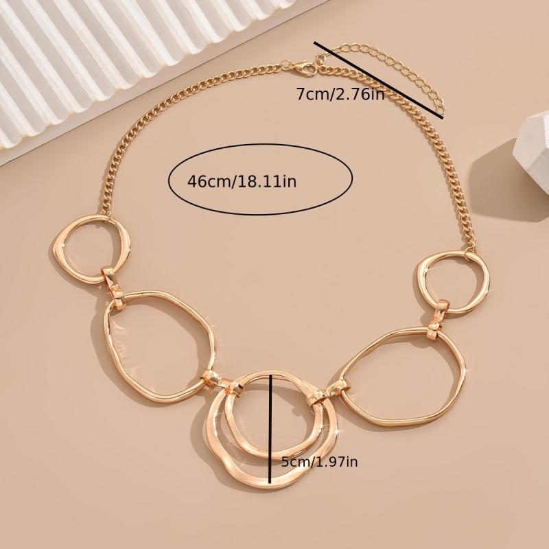 This versatile necklace features interconnected openwork circles with a hip hop style, perfect for parties and year-round wear. The golden tone adds a touch of glamour to any outfit.