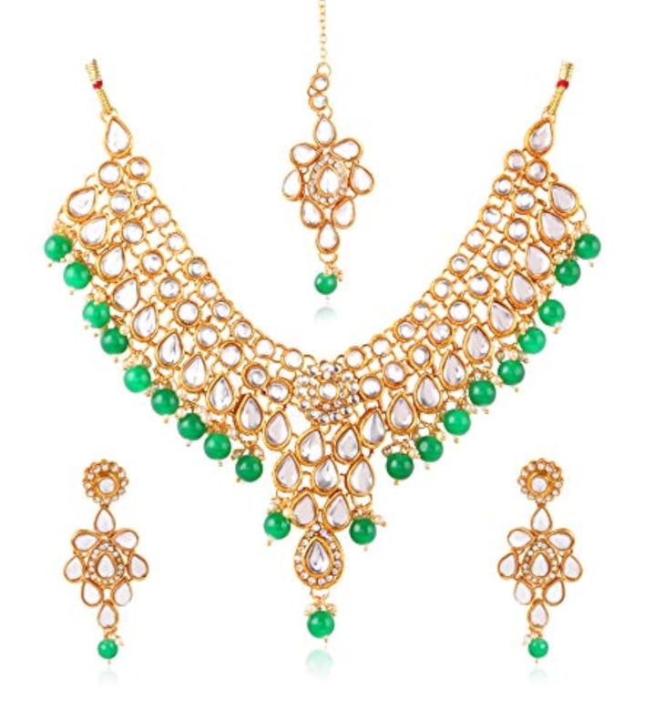 Add a touch of elegance to your attire with this stunning gold plated jewellery set. Perfect for special occasions.