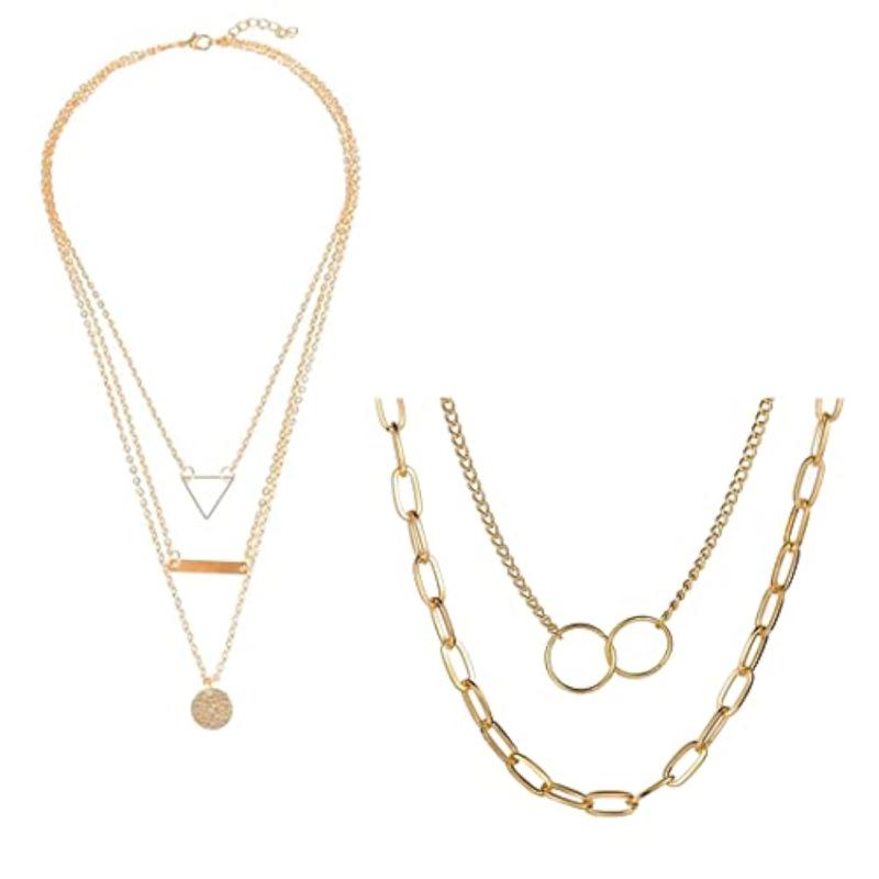 Elegant necklace set featuring layered design with stunning gold-plating. Perfect for adding a touch of glamour to any outfit.