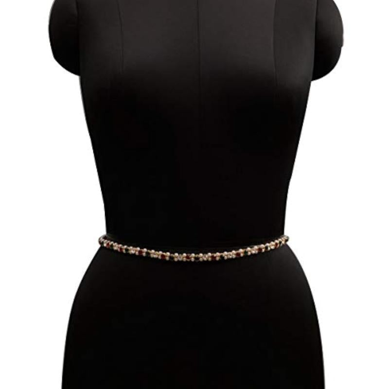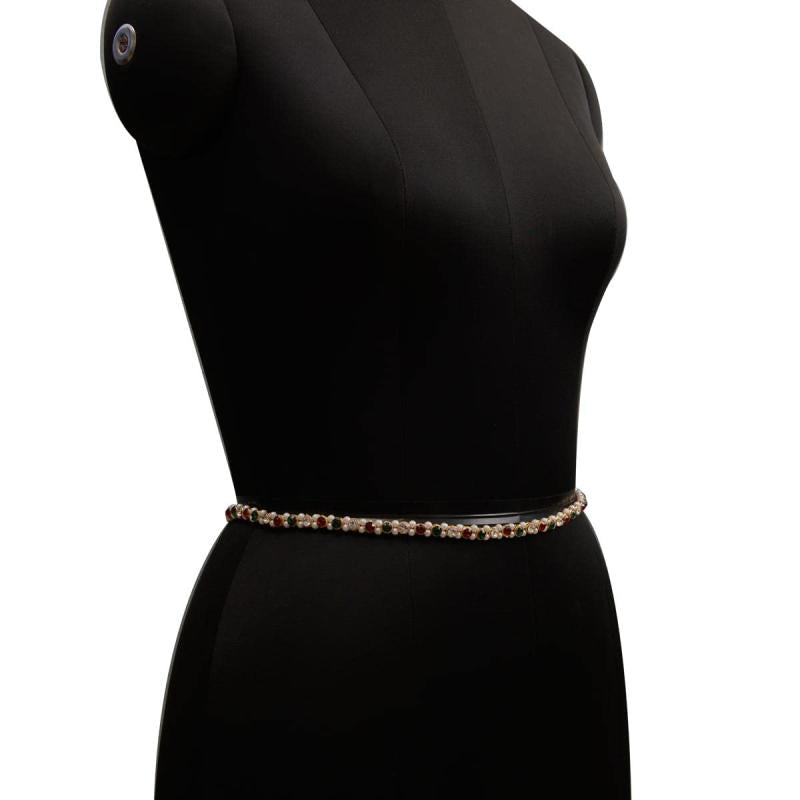Add a touch of elegance to your outfit with this gold-tone waist belt featuring stunning crystal embellishments.
