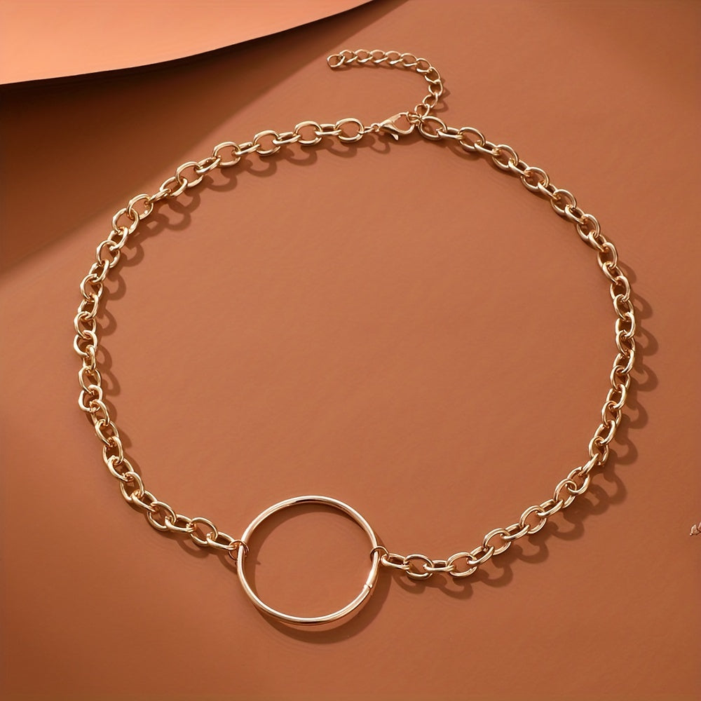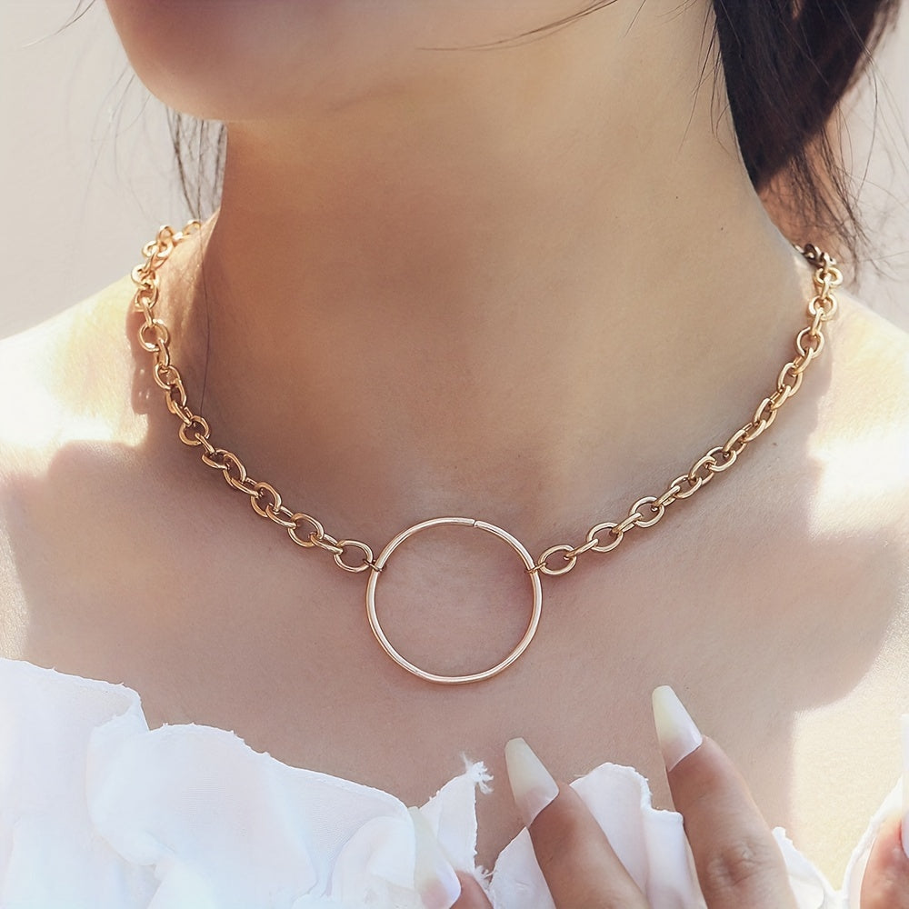 Elegant round hollow necklace in a beautiful golden finish, perfect for daily wear or special occasions.