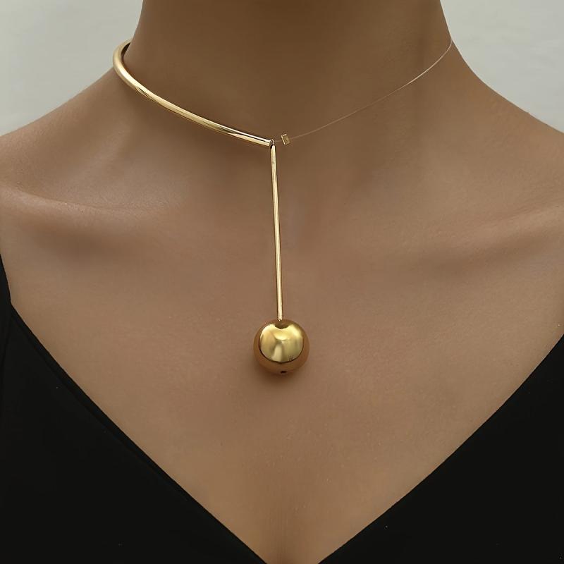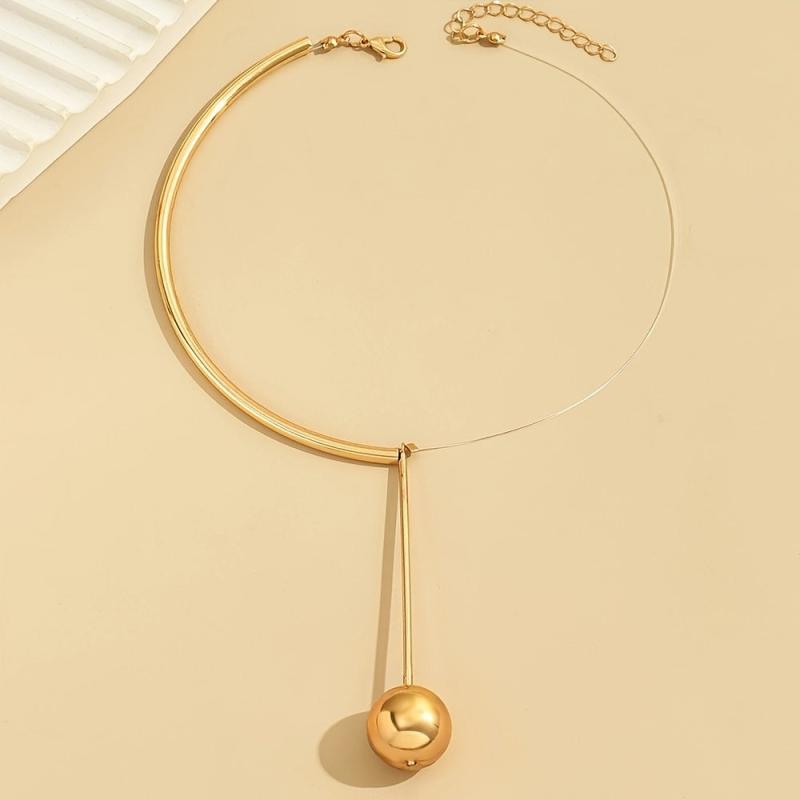 This elegant necklace features an asymmetrical design with a circle pendant and transparent fish line. It is ideal for daily wear and can also be worn to parties year-round. The minimalist golden tone adds a touch of sophistication to any outfit.