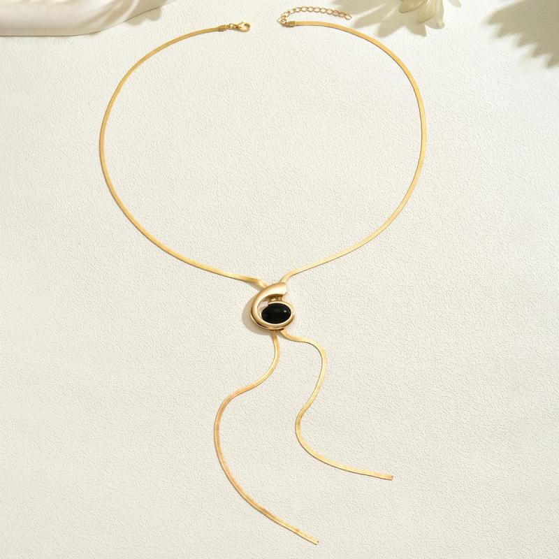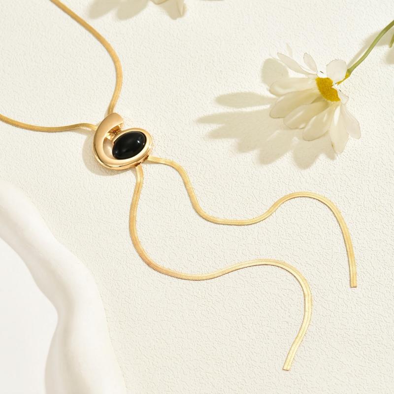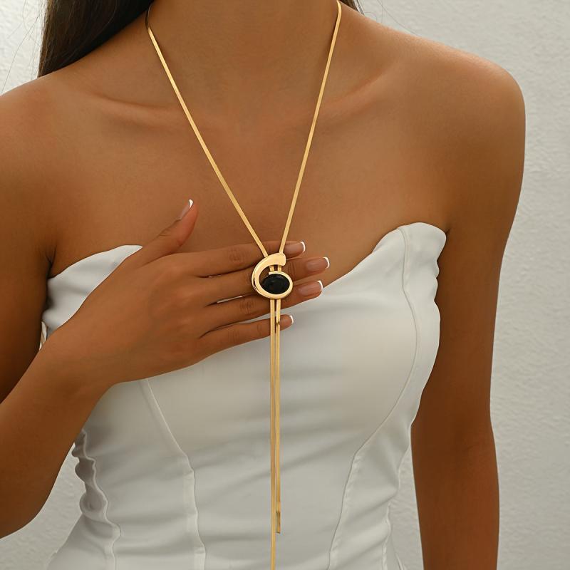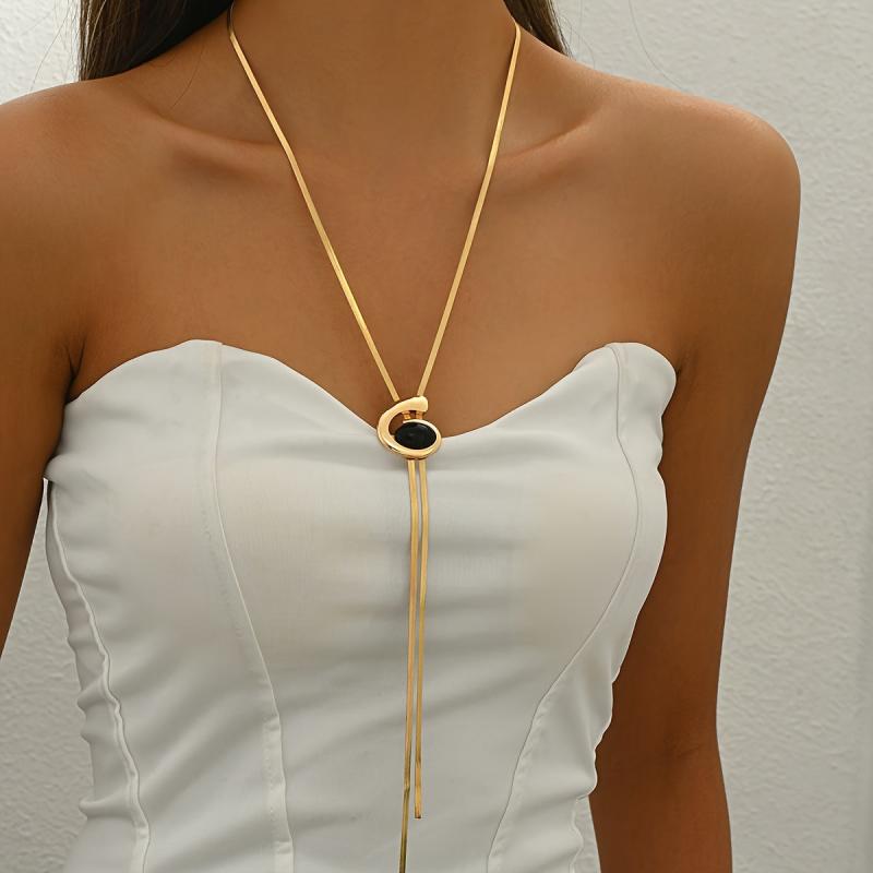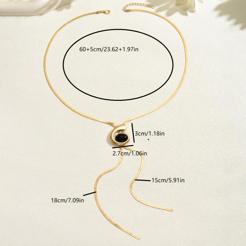Elevate your style with this bohemian retro Y-shaped long chain necklace featuring a rotating acrylic oval pendant. Perfect for everyday wear and special occasions.