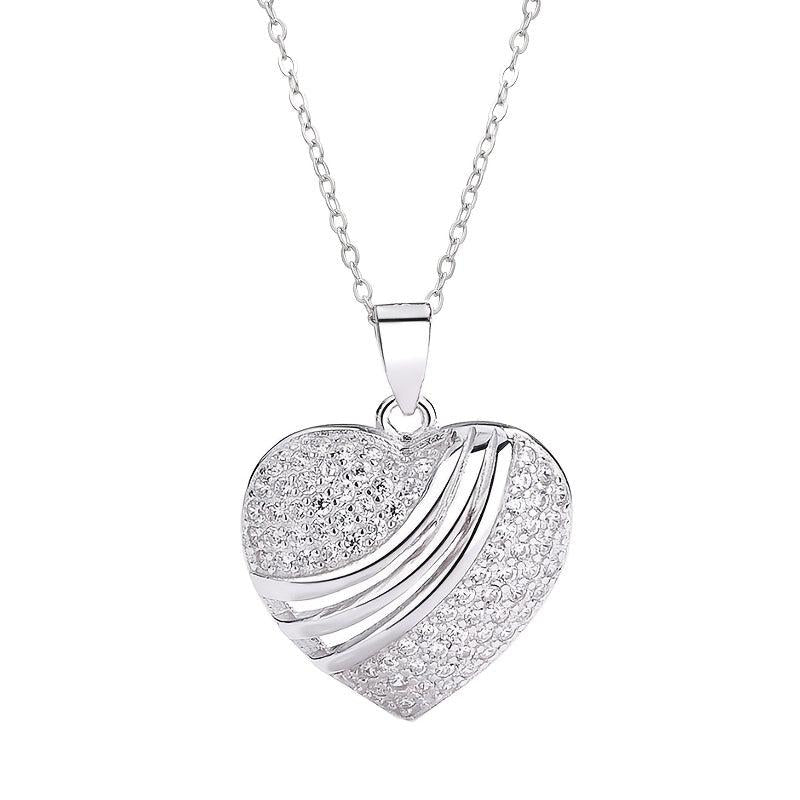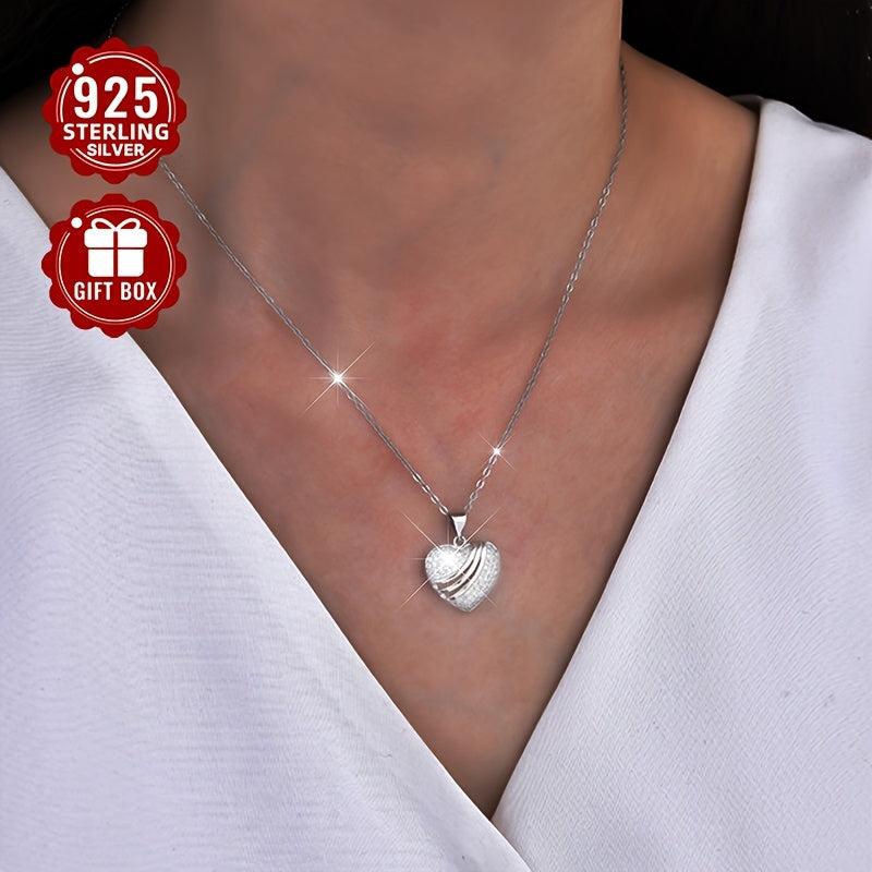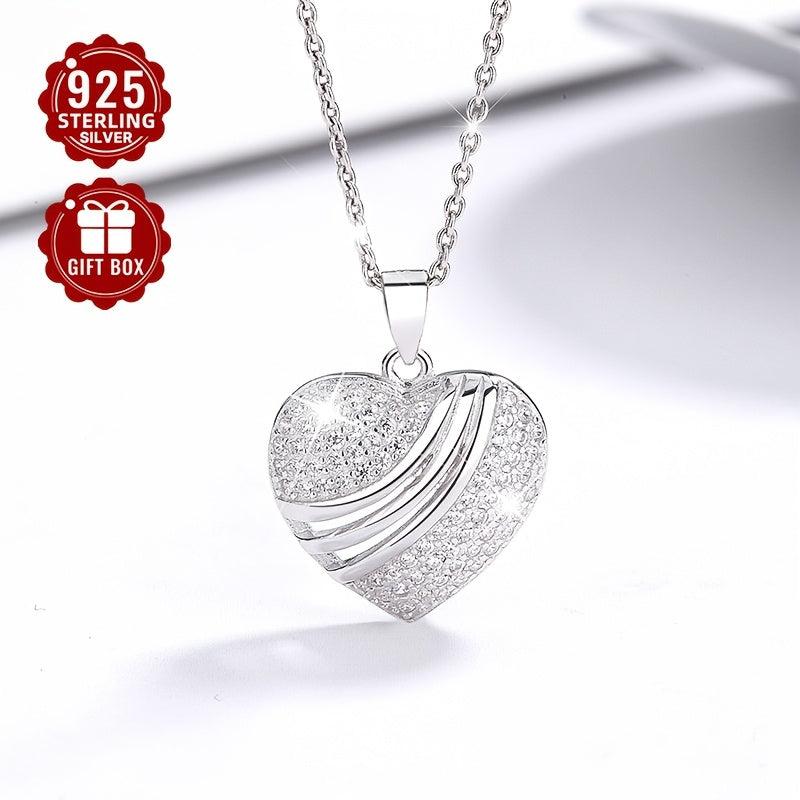 This pendant necklace is perfect for daily wear or parties. Made of S925 sterling silver with a hollow-out design and synthetic zirconia heart pendant.