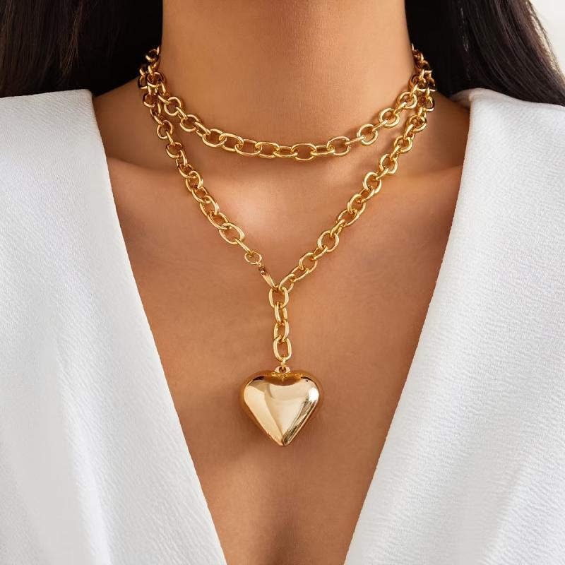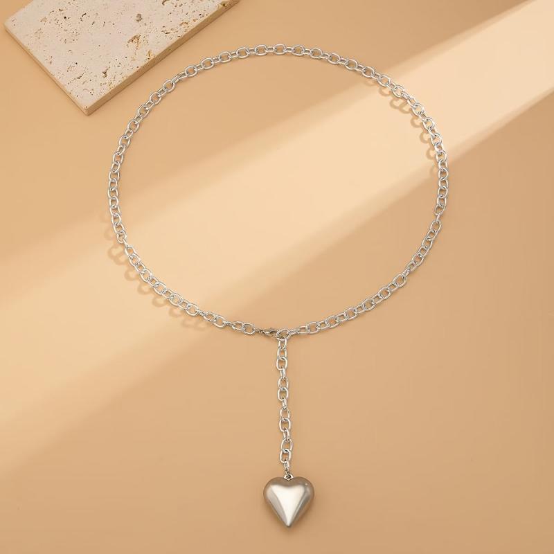 Stunning silver-plated stainless steel necklace and bracelet set featuring a heart-shaped pendant. Perfect for parties and special occasions.