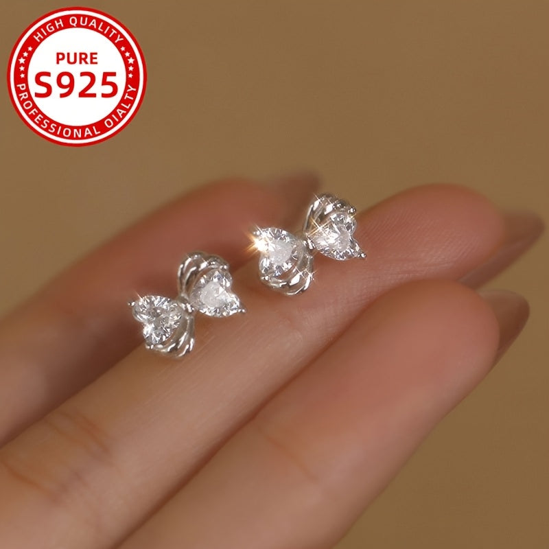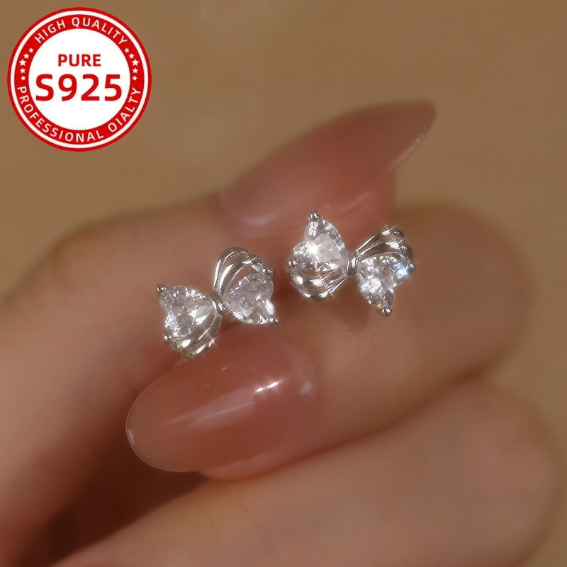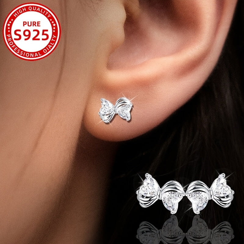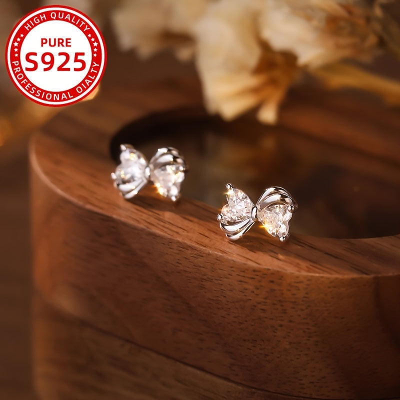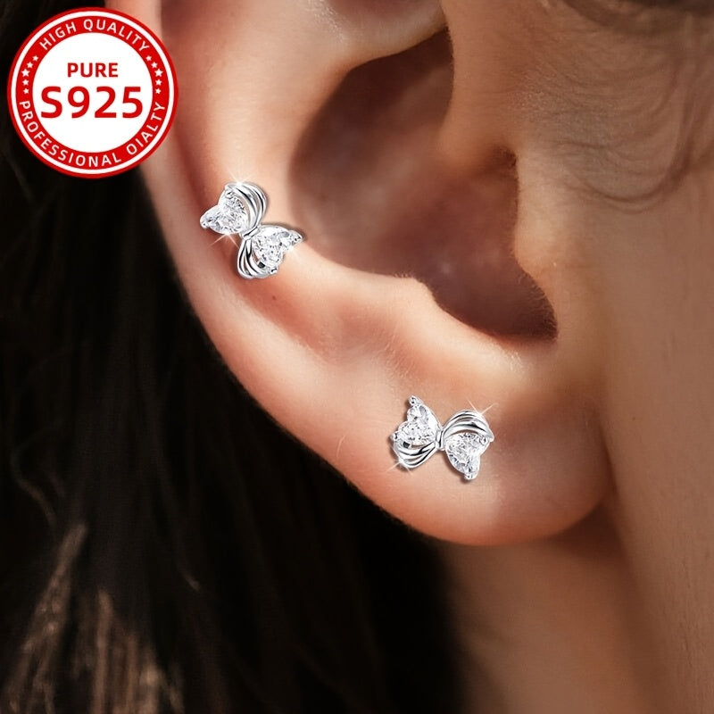 These sweet and gentle earrings feature a bow design with synthetic zirconia for a touch of sparkle. Perfect for daily wear or as a gift.