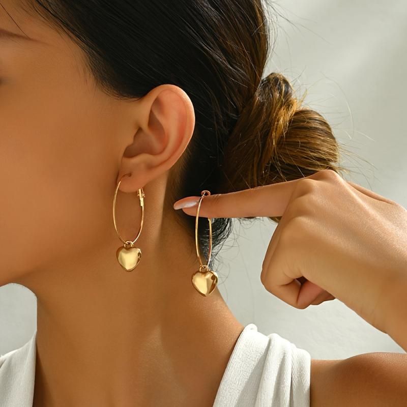 Elegant jewelry set featuring a love pendant, ring, and earrings. Perfect for daily wear and special occasions. Available in stunning golden and silver tones.
