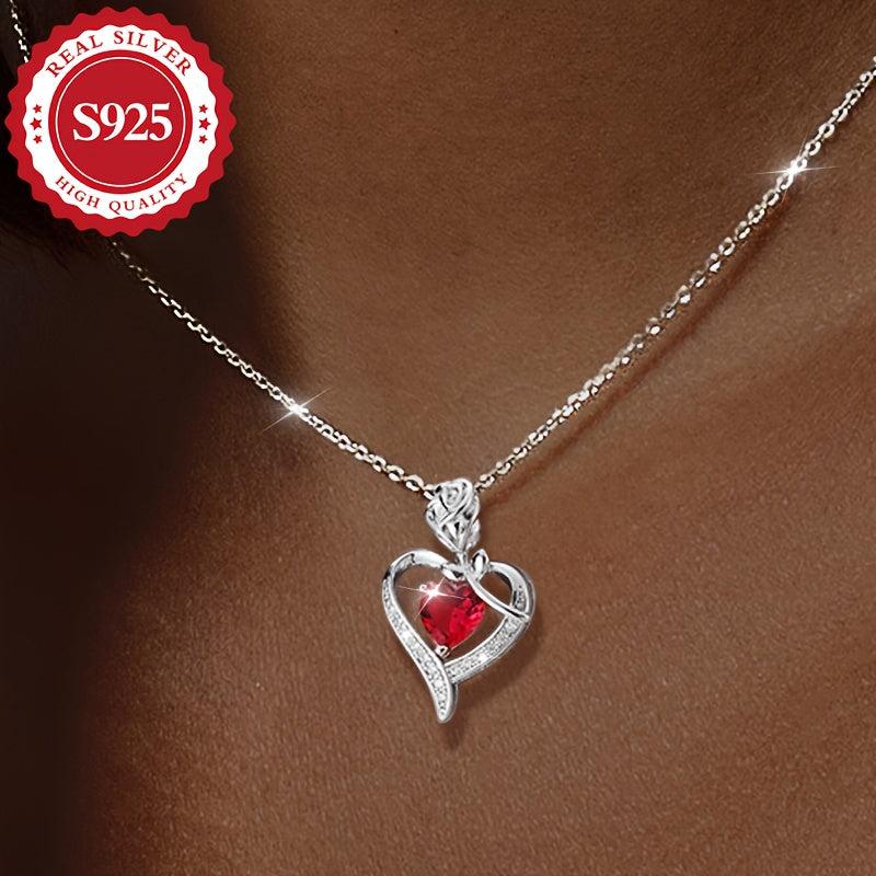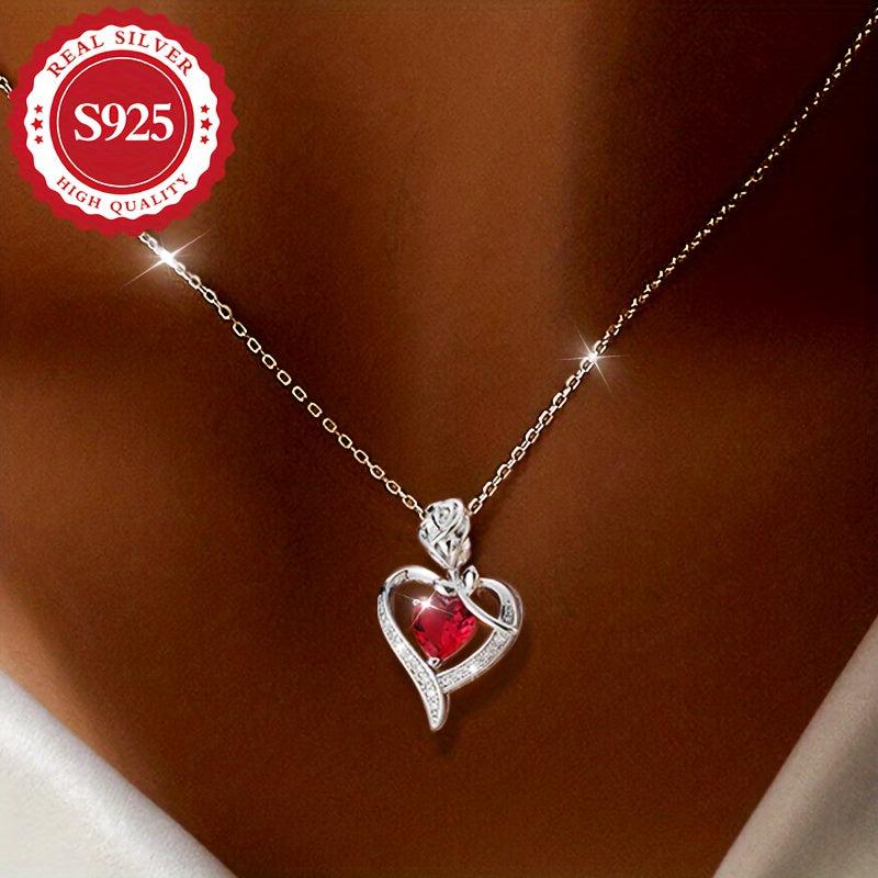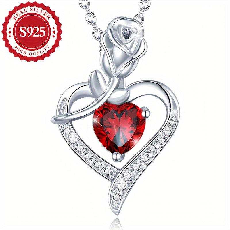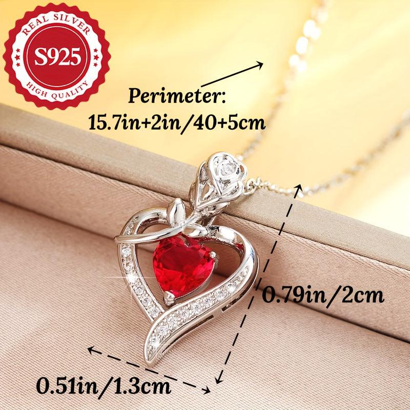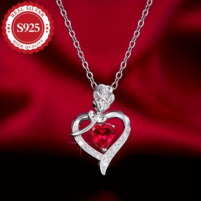 Express your love with this exquisite pendant featuring a rose inlay design with a stunning red synthetic zirconia, crafted in pure S925 silver. The perfect gift for your beloved.