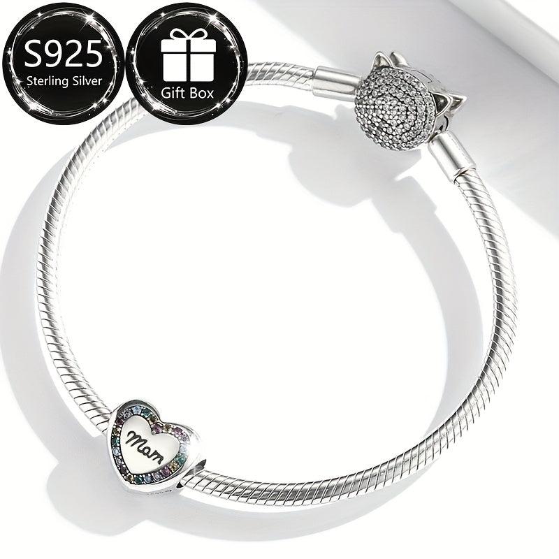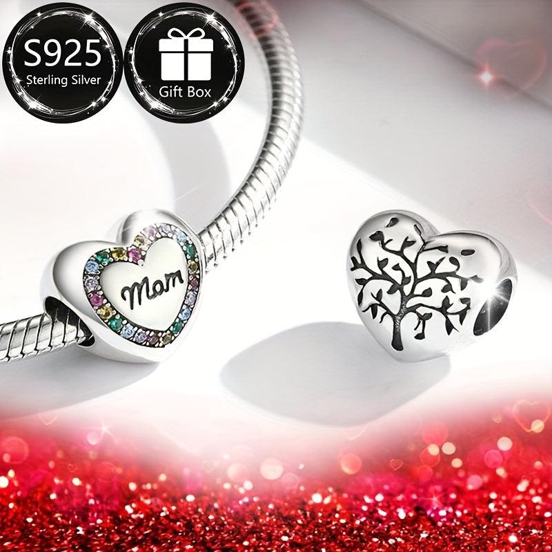 This elegant silvery S925 bracelet features a love tree pendant and colorful synthetic zirconia heart beads. It is a perfect gift for good friends and suitable for parties.