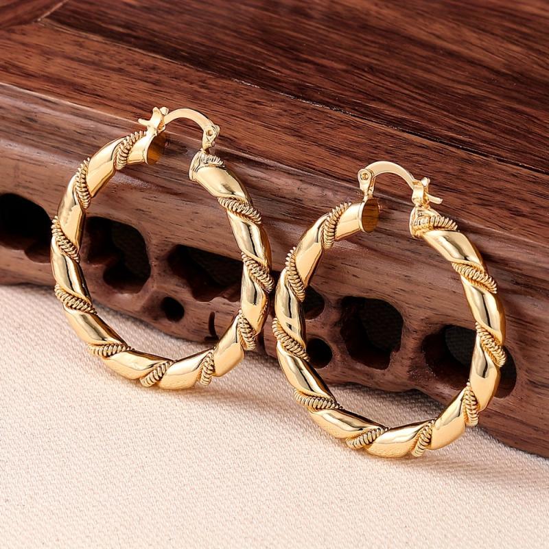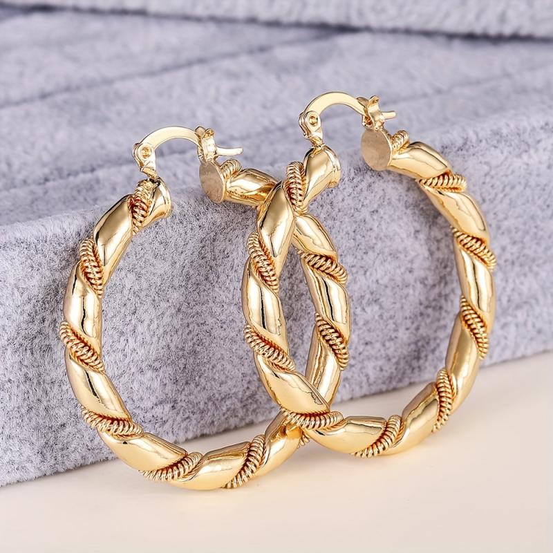 Elevate your look with these trendy hoop earrings featuring a twisted circle design. Perfect for everyday wear or special occasions like Ramadan or weddings.