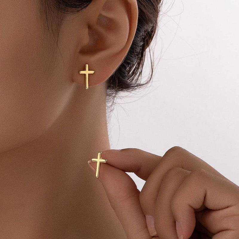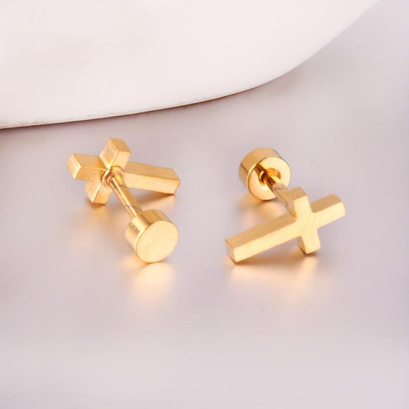 Add a touch of elegance with these classic cross stud earrings. Made of 316L stainless steel, they are hypoallergenic and waterproof, perfect for everyday wear. Available in 2 stylish options, these earrings are versatile and timeless.