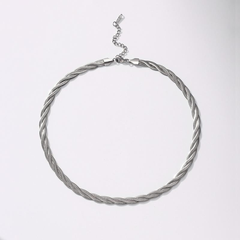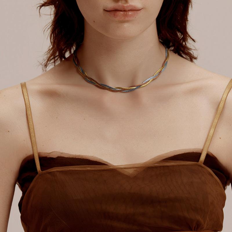 This stylish women's necklace features a three-layer design with braided snake bone pattern. Made of high-quality stainless steel, it is hypoallergenic and suitable for parties, birthdays, and beach outings.