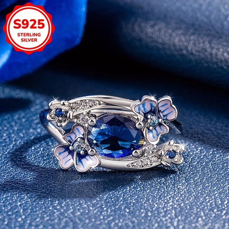 This stunning ring features a creative flower design with synthetic zirconia stones in a 925 silver setting. Perfect for a banquet, vacation, or music event.