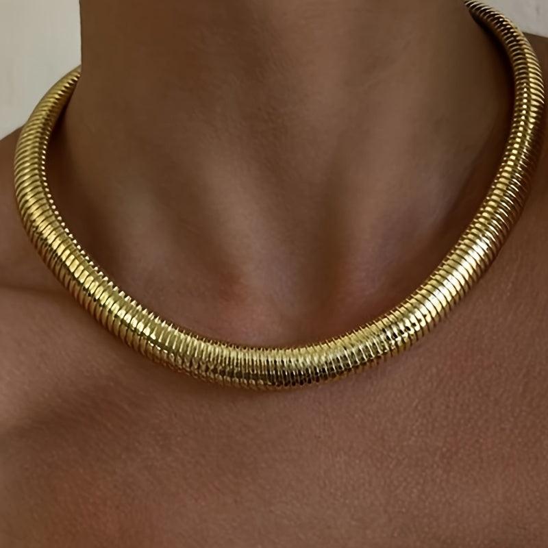 Edgy metallic finish choker perfect for everyday or party wear. This bold textured ribbed choker is a versatile accessory for year-round style.