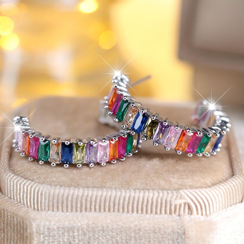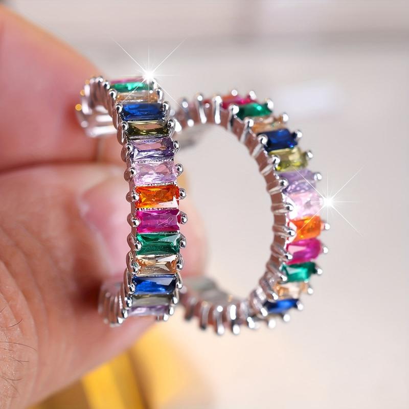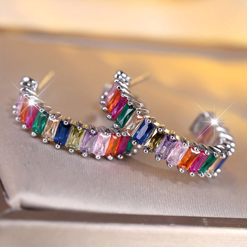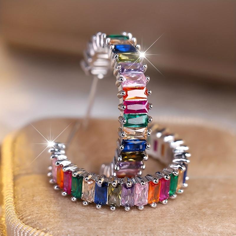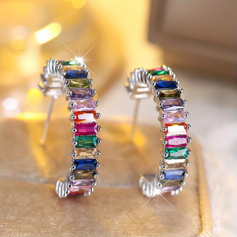 Add a pop of color to your outfit with these stunning huggy earrings made of colorful synthetic zirconia and copper. Perfect for parties, weddings, birthdays, and engagements.