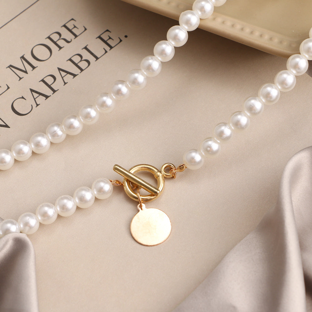 Elegant round pendant necklace crafted in a beautiful gold tone finish.