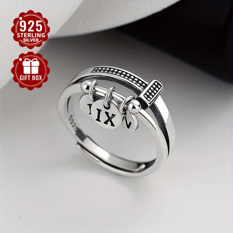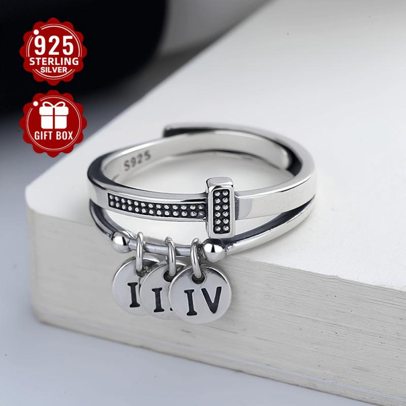 This stylish open ring features a small round tag pendant in a hip hop punk style design, perfect for party activities.
