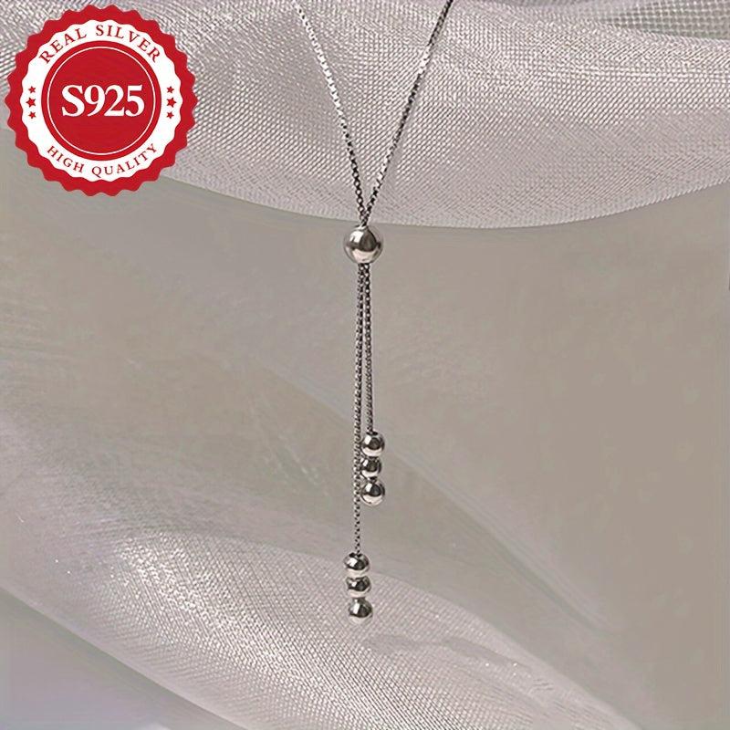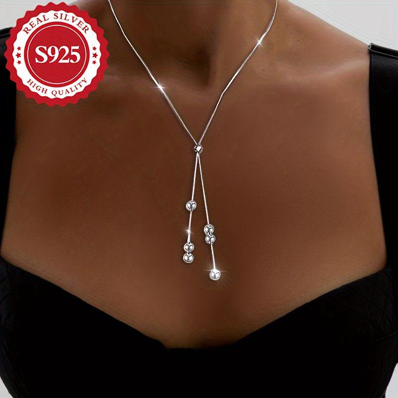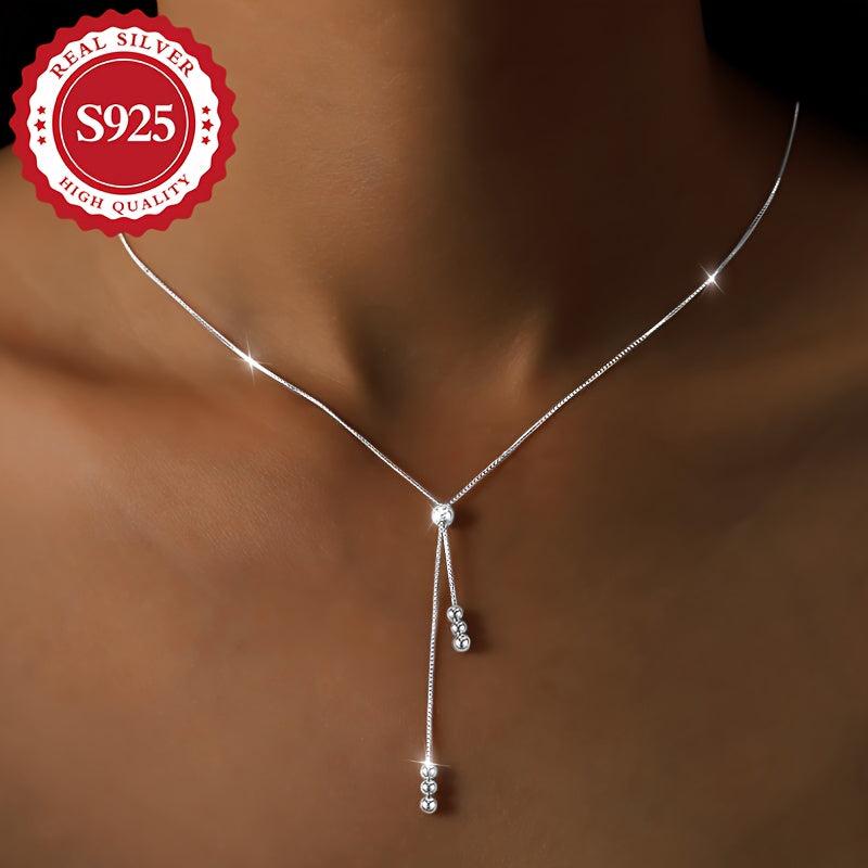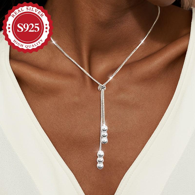 This S925 silver round bead pull chain necklace is a special high and bold piece, perfect as a holiday present or gift for Christmas. The adjustable length adds to its versatility.