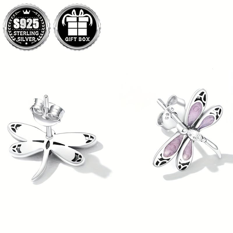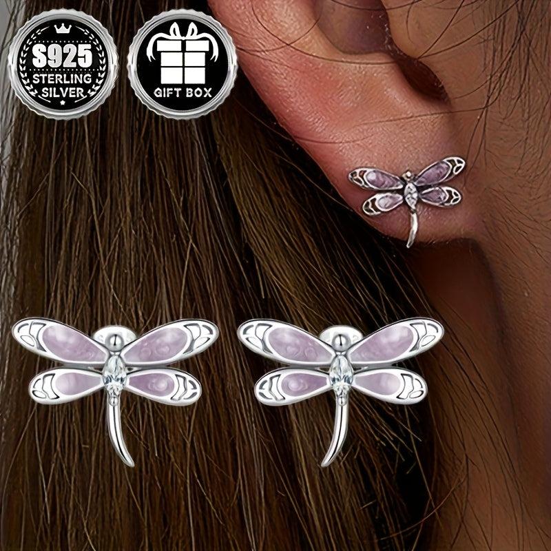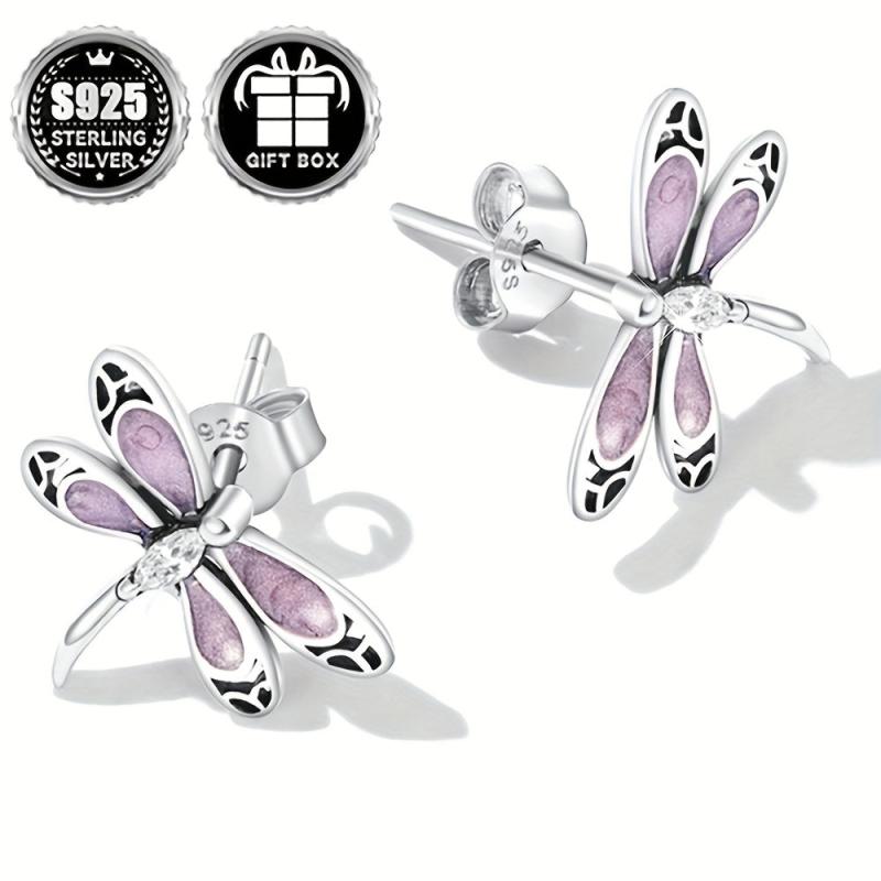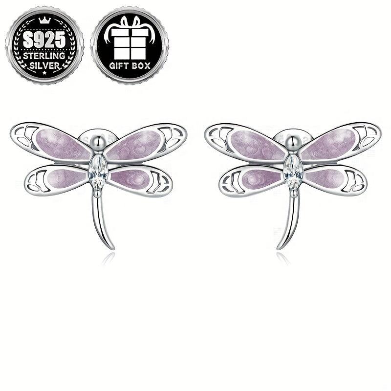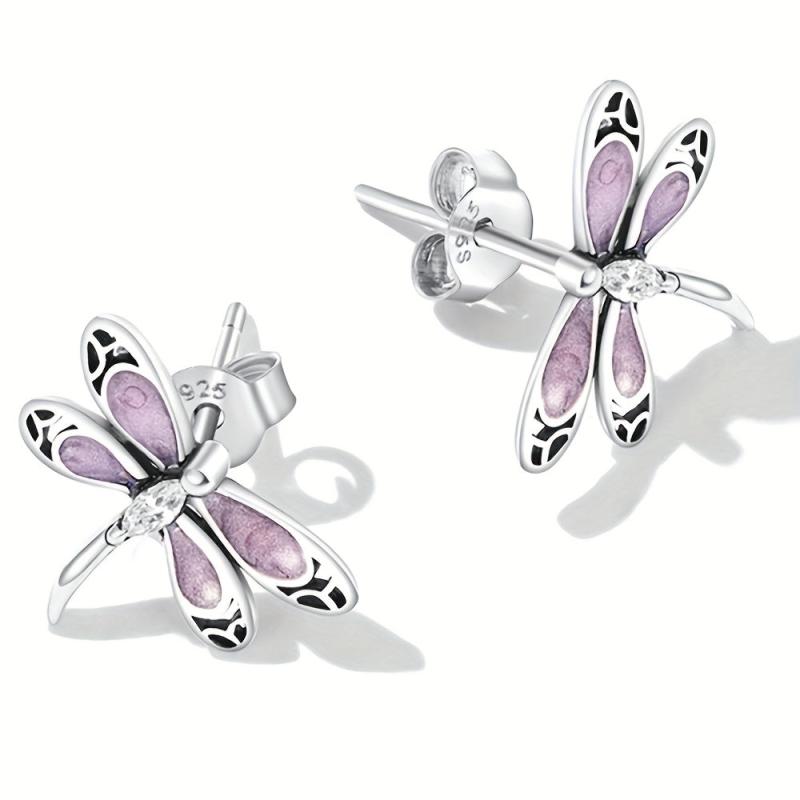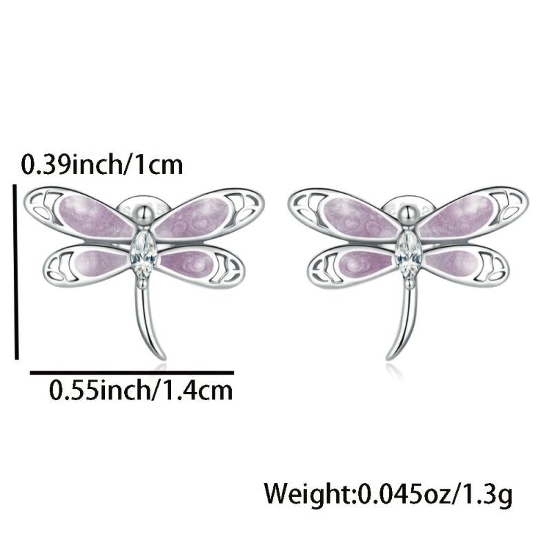 These elegant dragonfly earrings feature a pink synthetic zirconia inlay and a hollow design. Perfect for gifting.