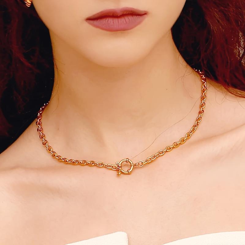 This necklace features a retro golden tone chain with an O-shaped spring clasp pendant, making it a versatile everyday jewelry piece. It is a perfect gift for her, suitable for various occasions.