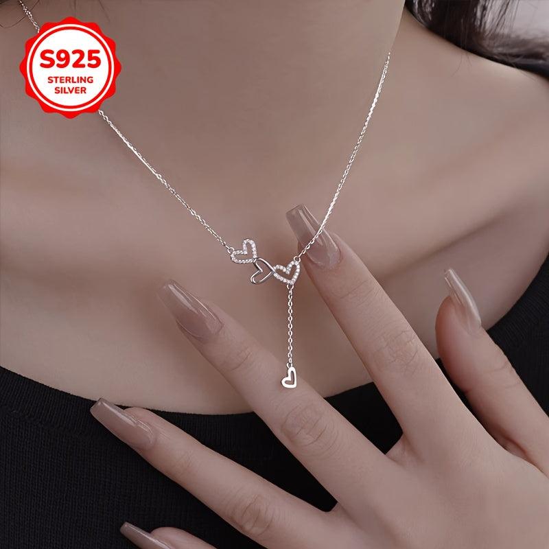 Elegant S925 sterling silver necklace featuring a hollow heart pendant with tassel. Perfect for any occasion.
