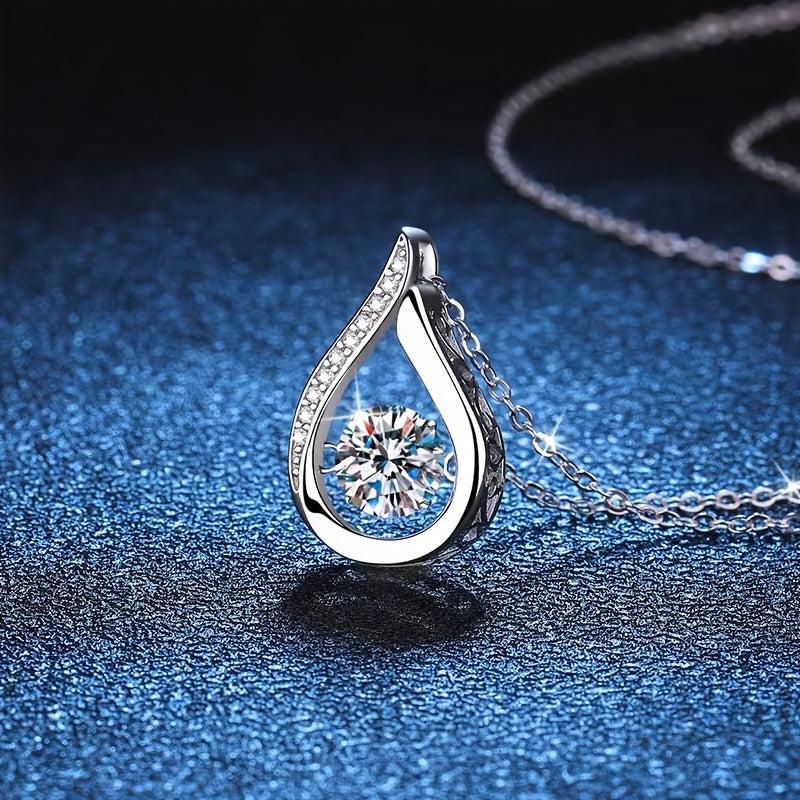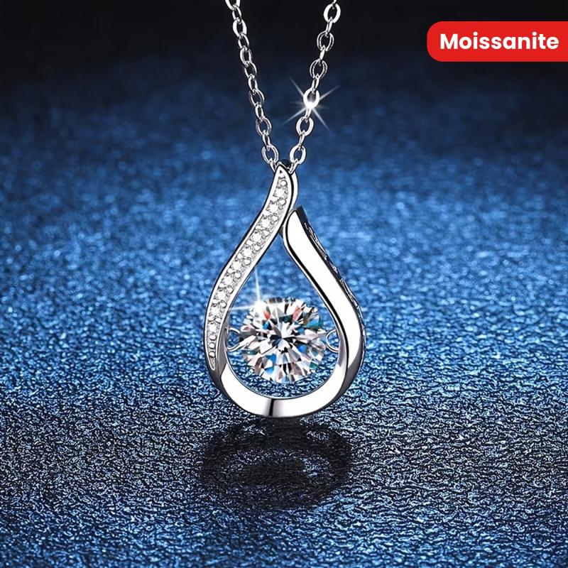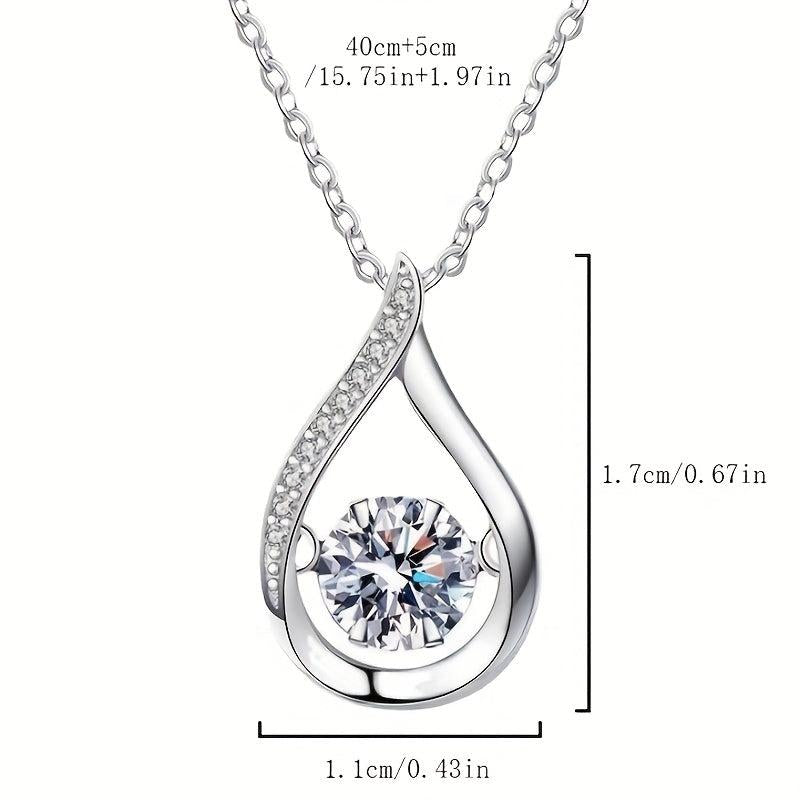 This elegant necklace features a teardrop pendant with a synthetic moissanite stone set in polished K golden metal. Perfect for adding a touch of sparkle to any outfit.