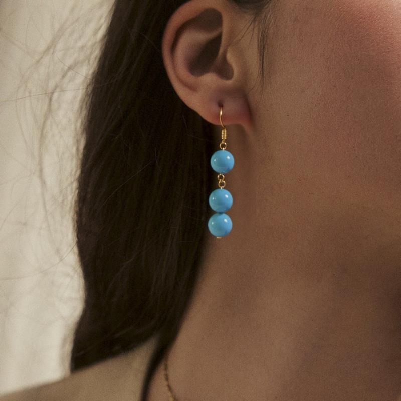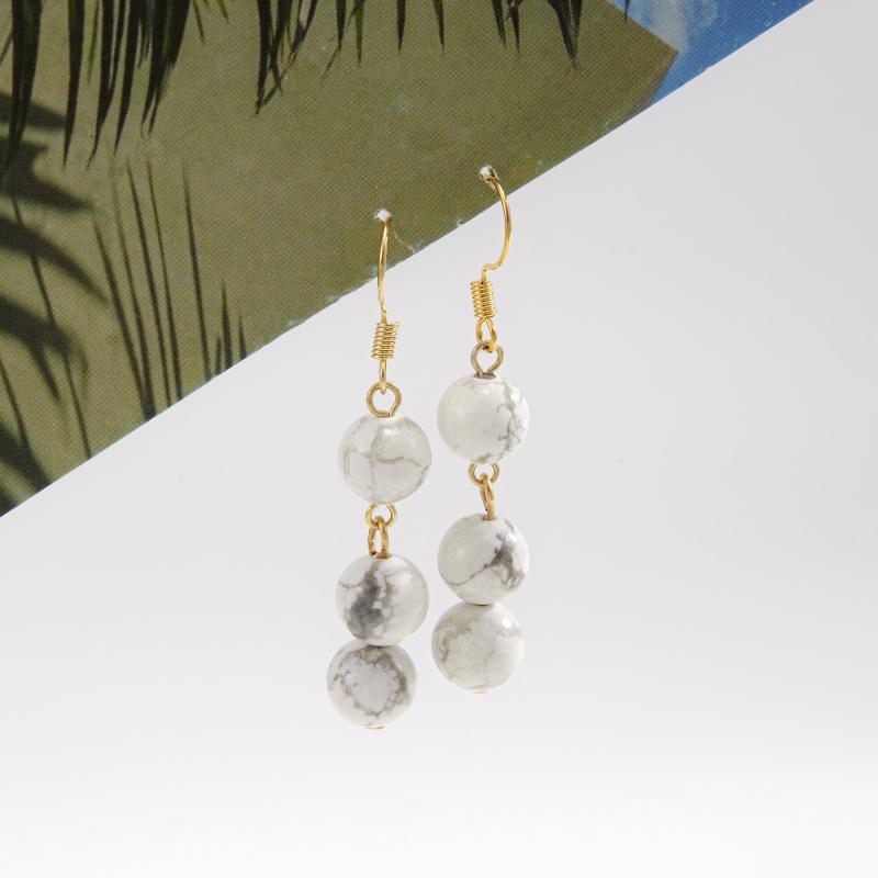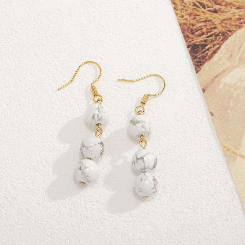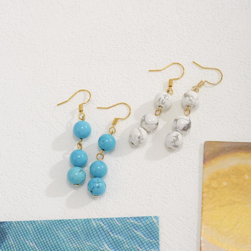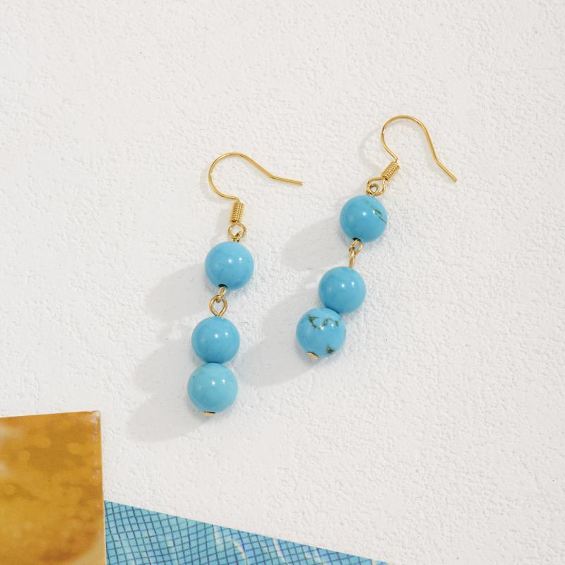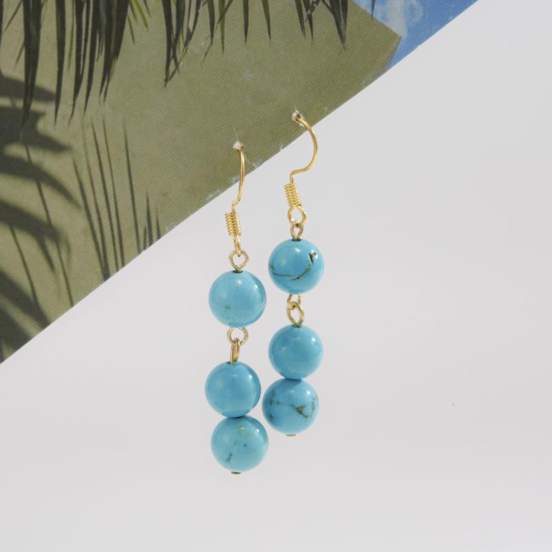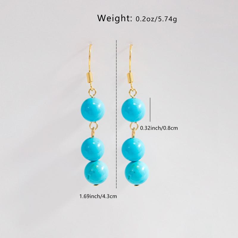 These earrings feature synthetic turquoise beads with a pendant design, made of hypoallergenic copper material. They have a low allergy risk and are perfect for parties, banquets, or as a gift.