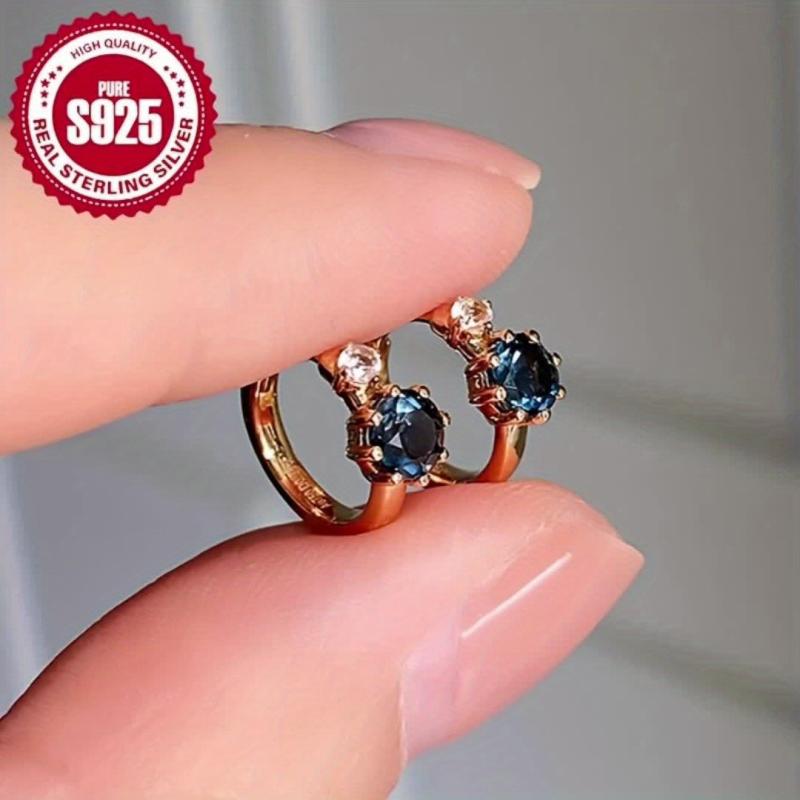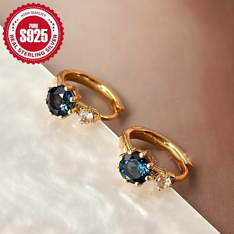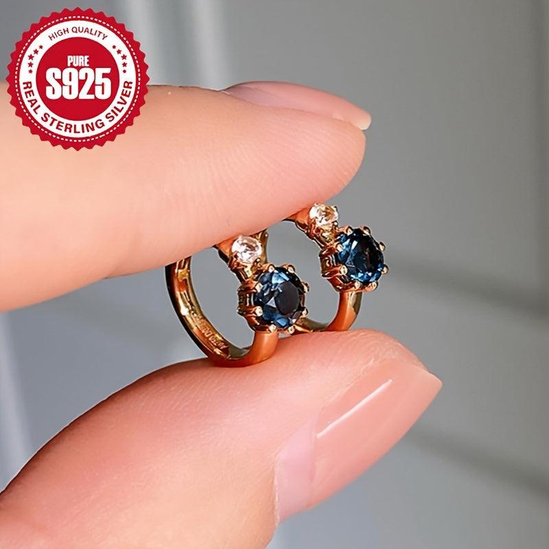 These hoop earrings feature synthetic zirconia studs in 925 silver, perfect for everyday wear or gift giving. Hypoallergenic for sensitive ears.
